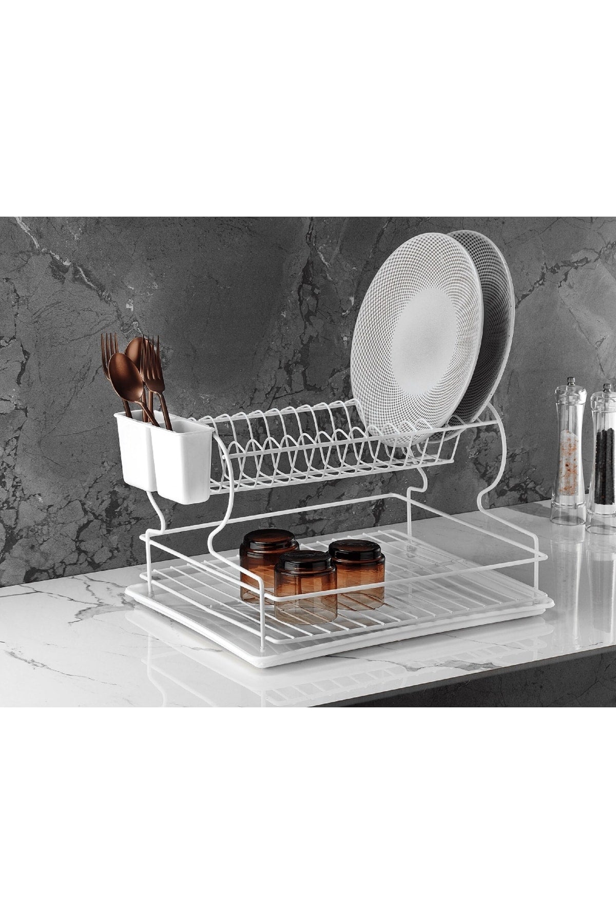 Lifetime Stainless Dish Rack Dish Basket Double Plate Rack Thermo Plastic Coating White