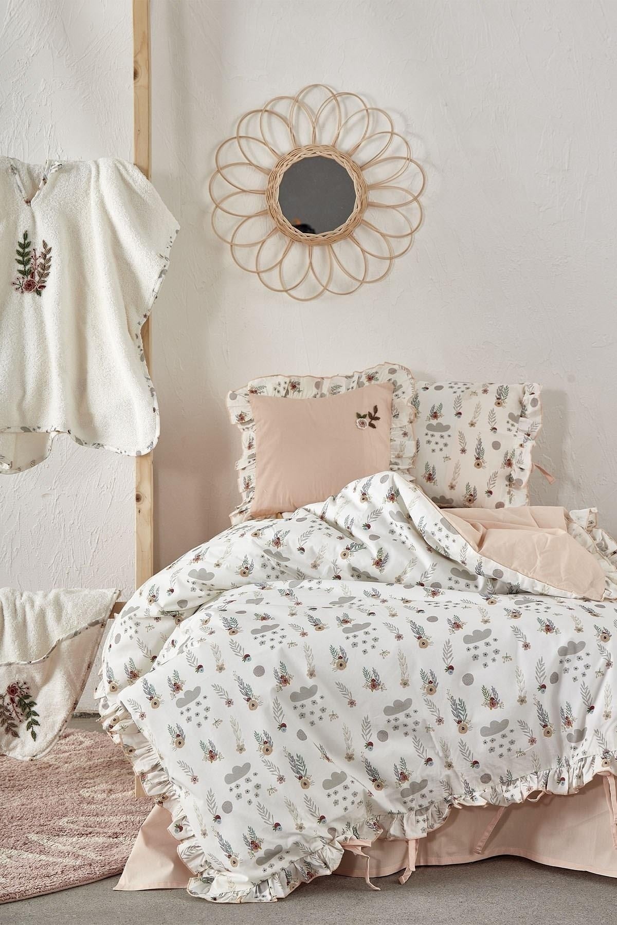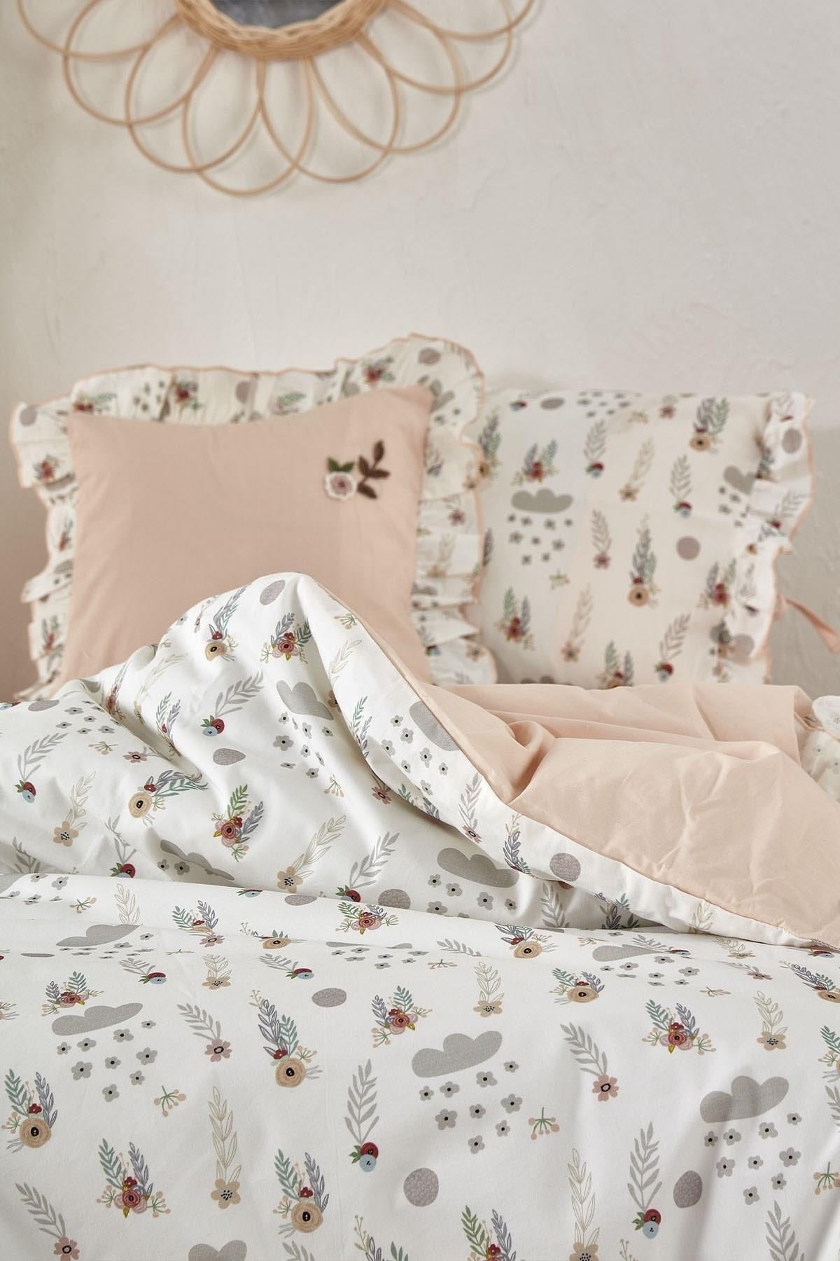 Lora Baby Girl Duvet Cover Set 100% Organic Cotton Hand Embroidered Printed 100X150 Cm