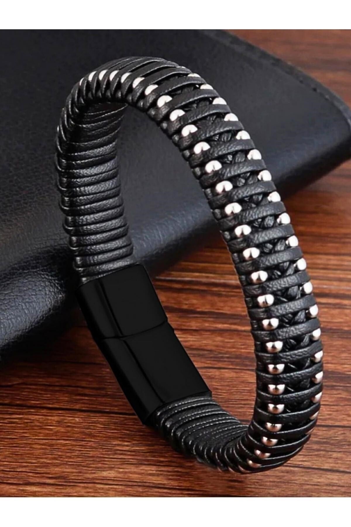 Magnetic Hematite Stone Men'S Leather Bracelet