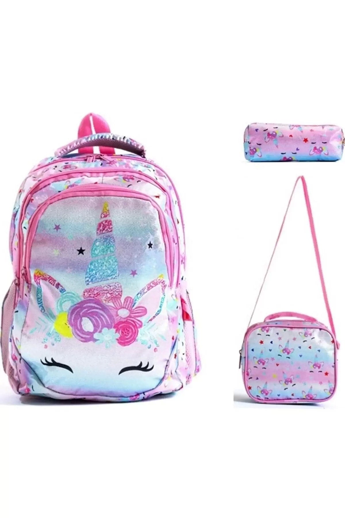 Master Pack Sim Unicorn Patterned Pink Color Baby Girl Backpack Primary School Bag With Food And Pencil Holder
