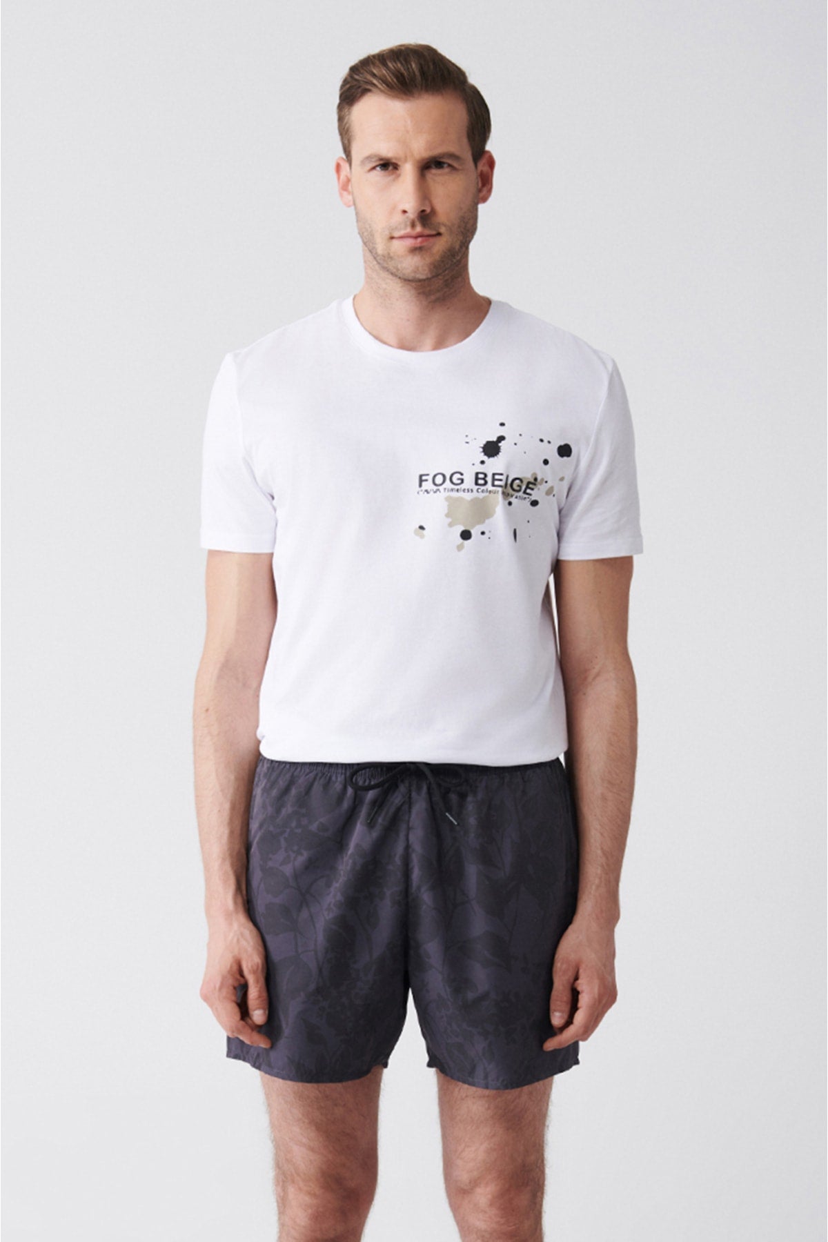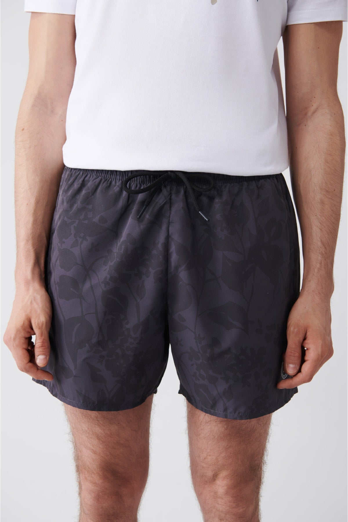 Men'S Anthracite-Gray Quick Dry Printed Standard Size Swimwear Marine Shorts E003802
