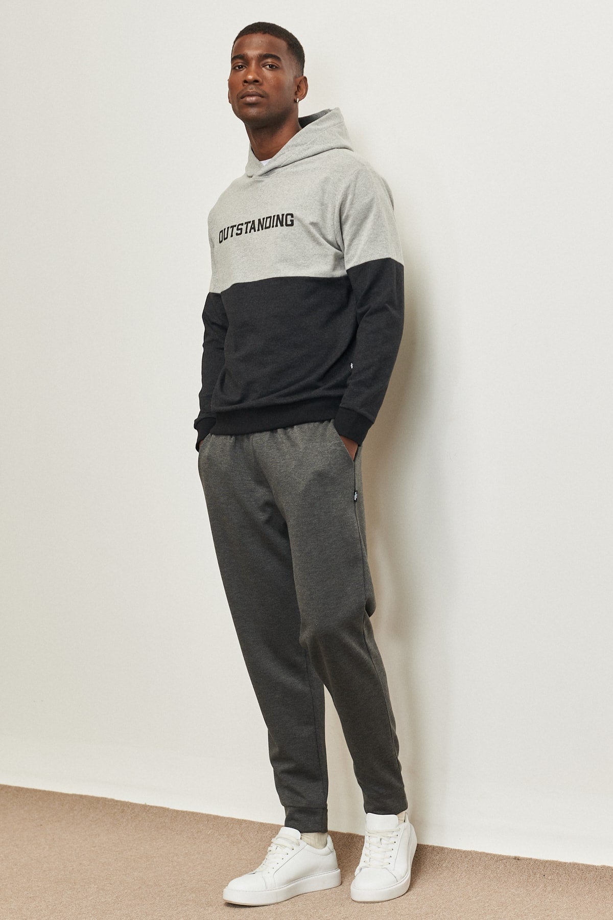 Men'S Anthracite-Melange Standard Fit Normal Cut Elastic Waist And Legs Comfortable Sports Sweatpants