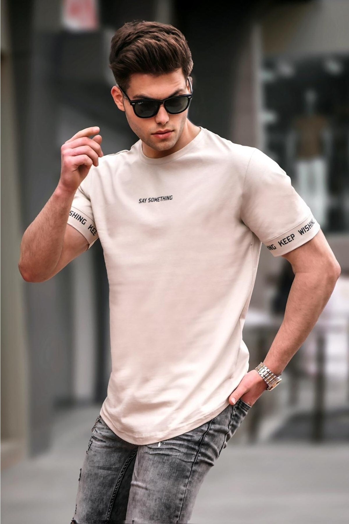 Men'S Beige Basic Men'S T-Shirt 4461