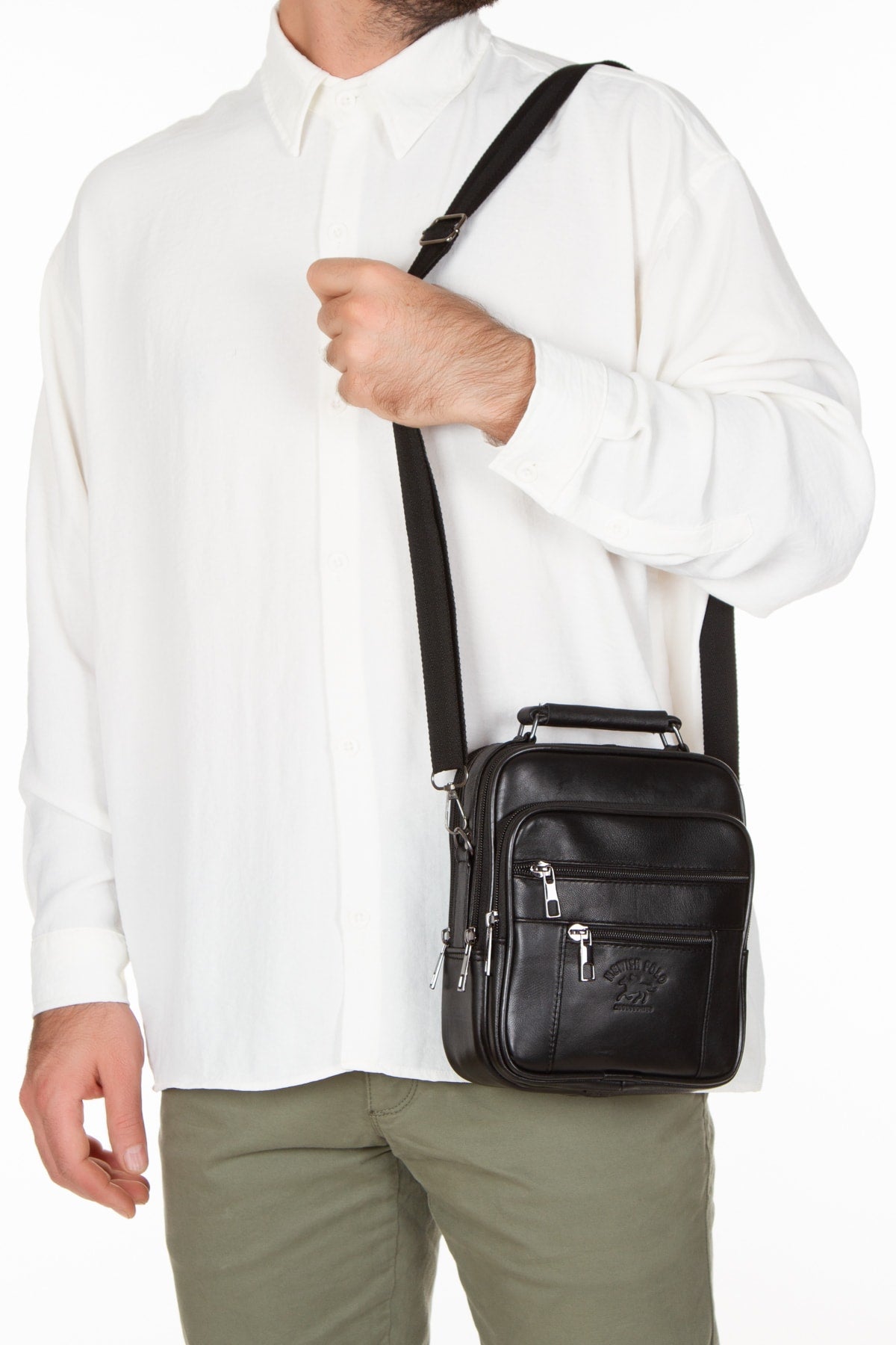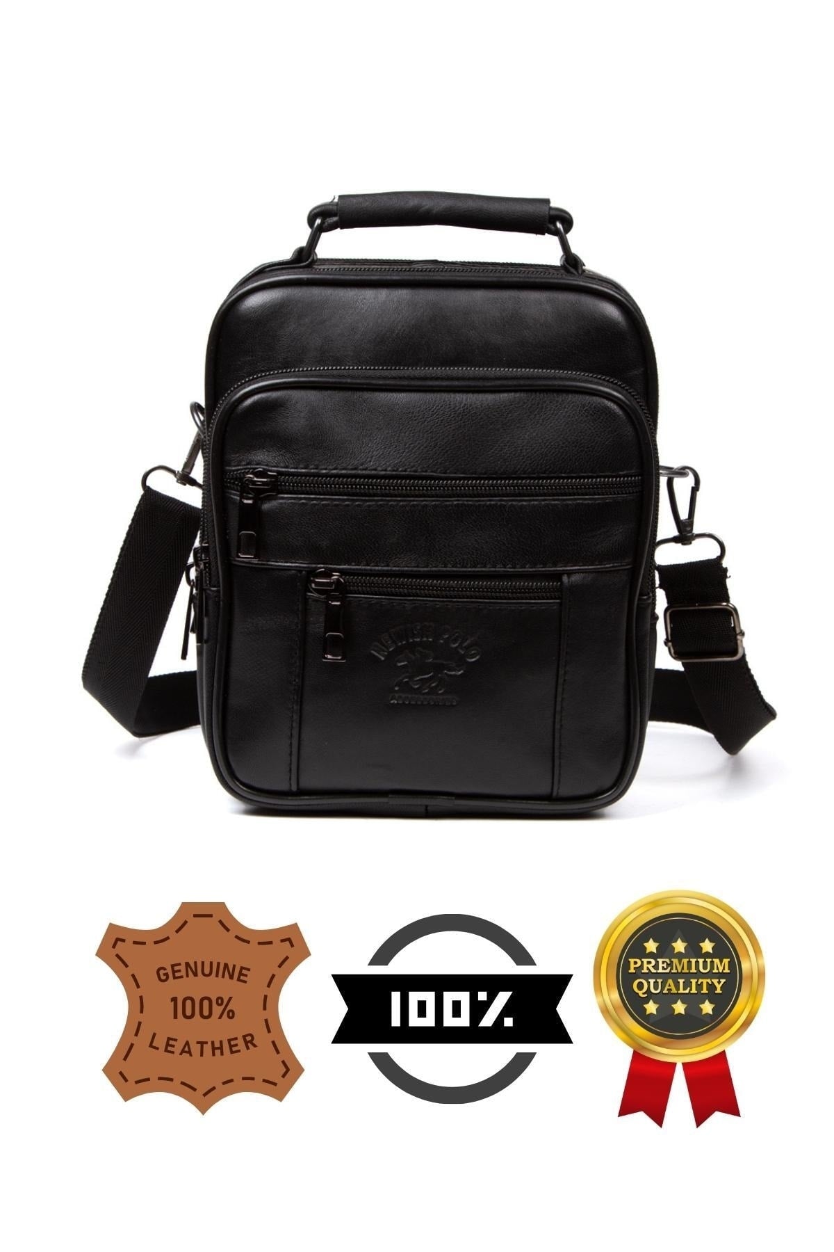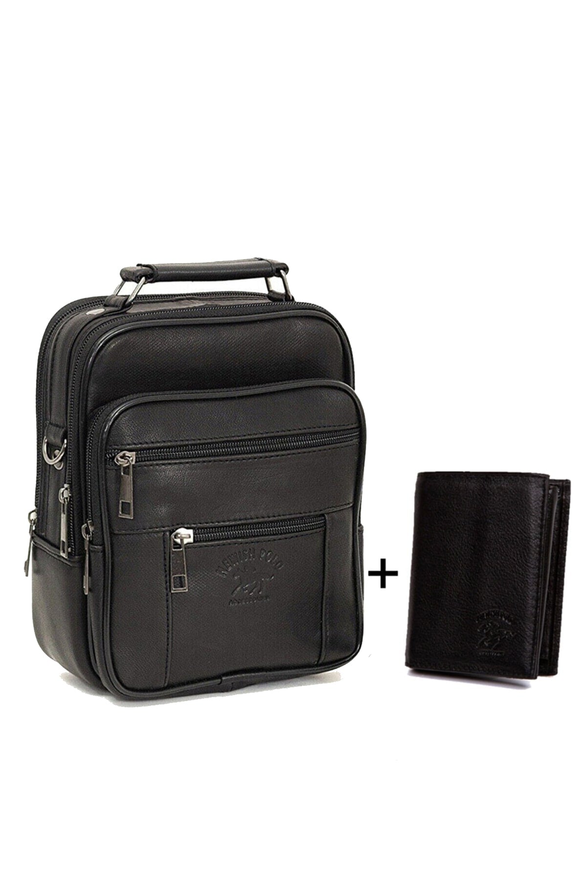 Men'S Black Genuine Leather Steel Case Hand And Shoulder Bag And Genuine Leather Wallet Set 100% Genuine Leather