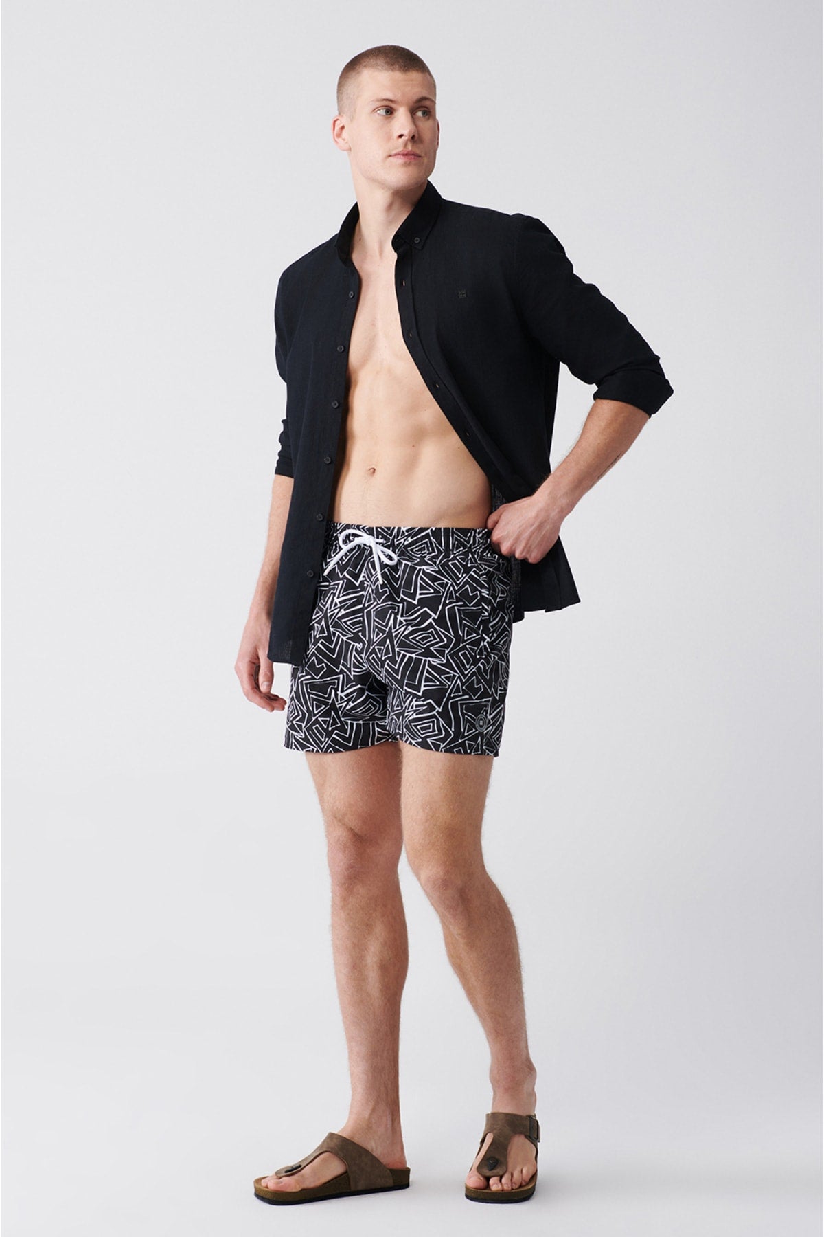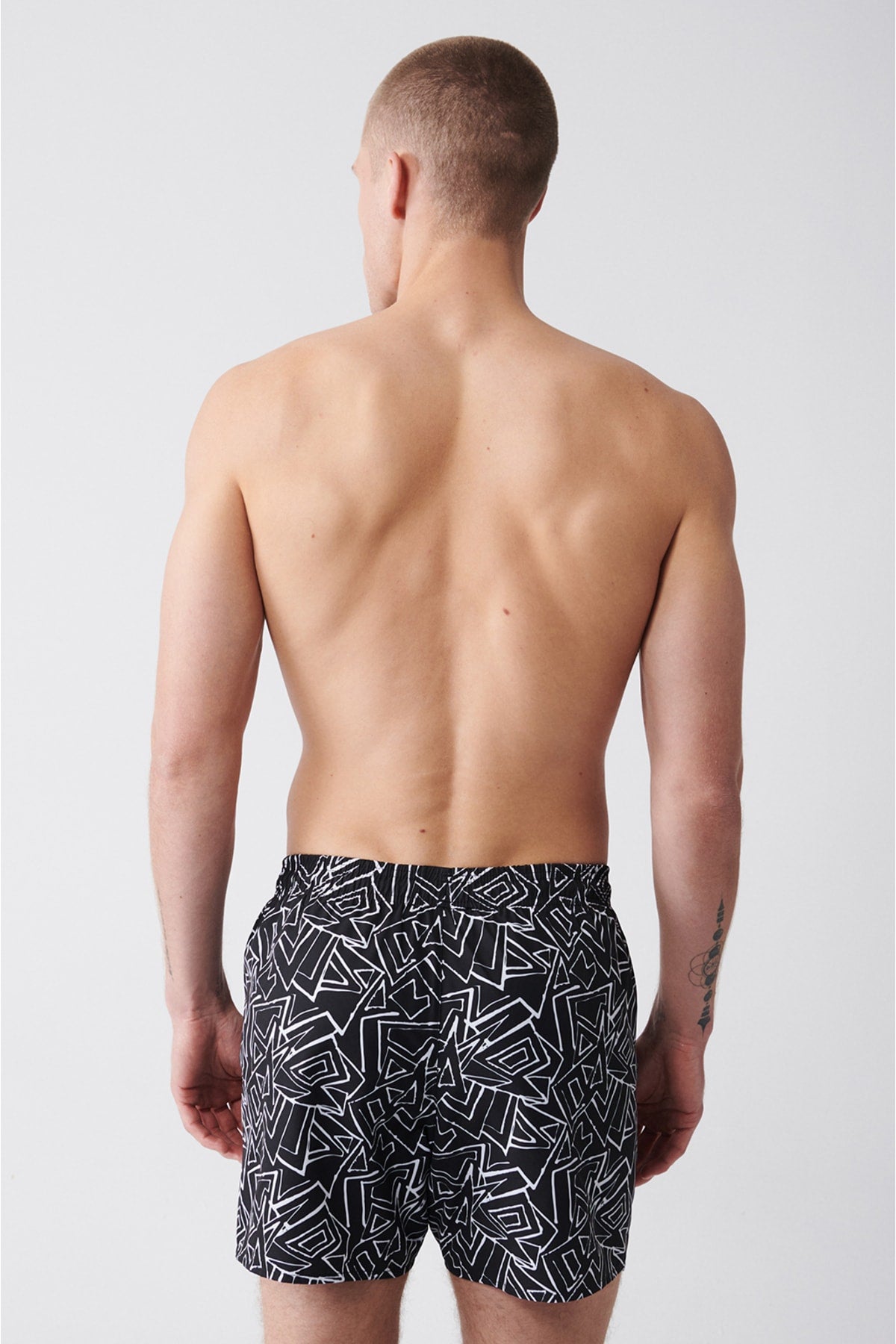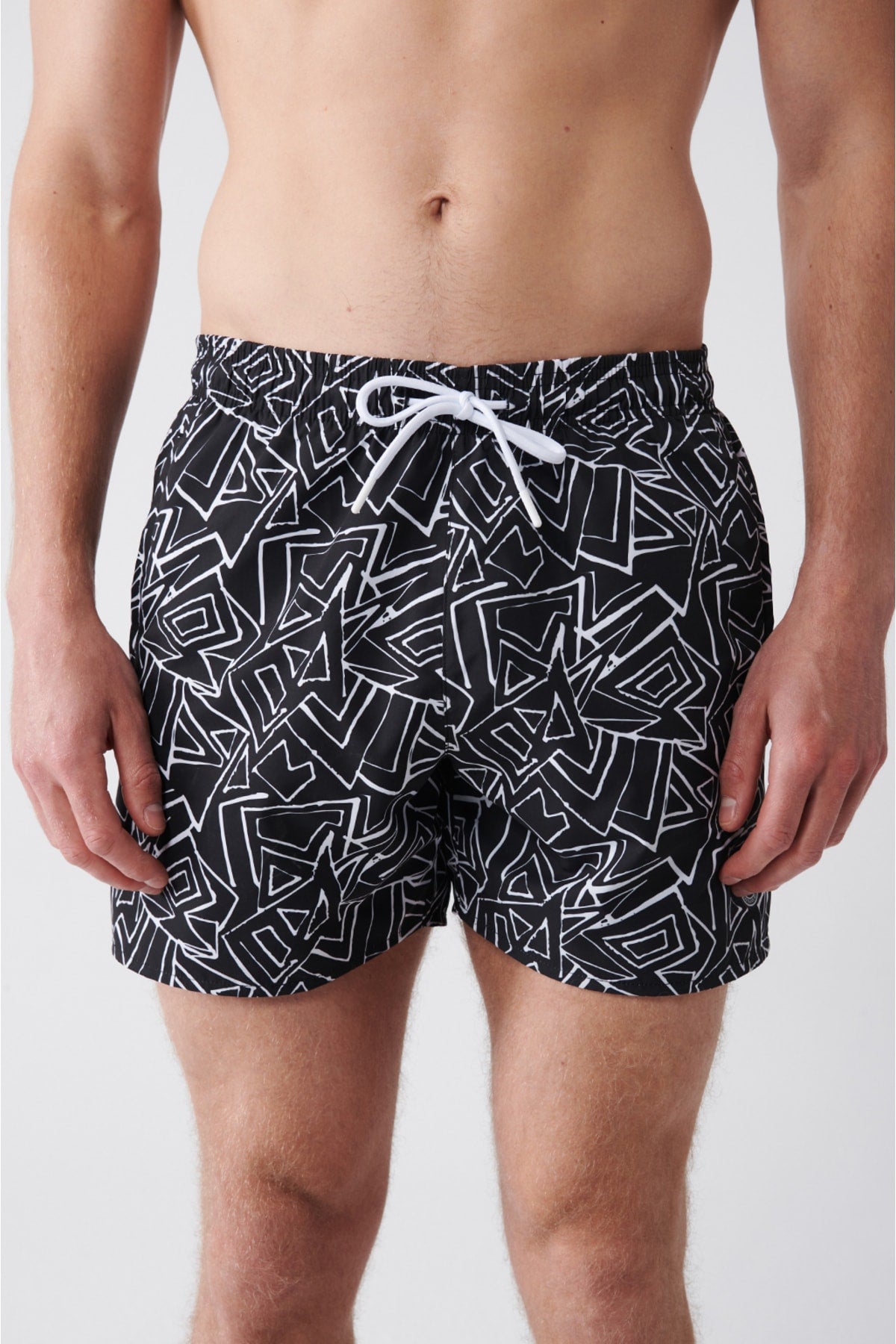 Men'S Black Quick Dry Printed Standard Size Swimwear Marine Shorts E003802