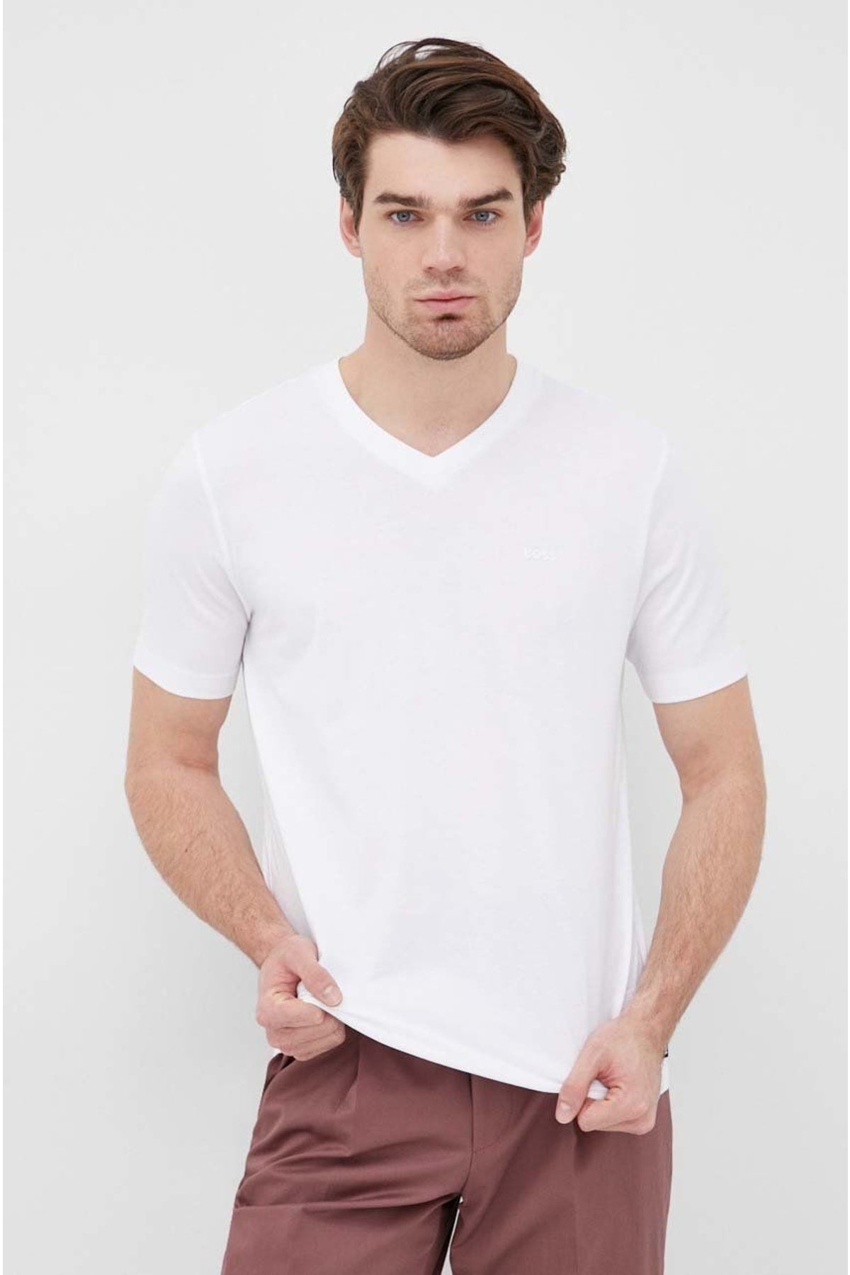 Men'S Cotton V Neck Regular Fit White T-Shirt 50468348-100