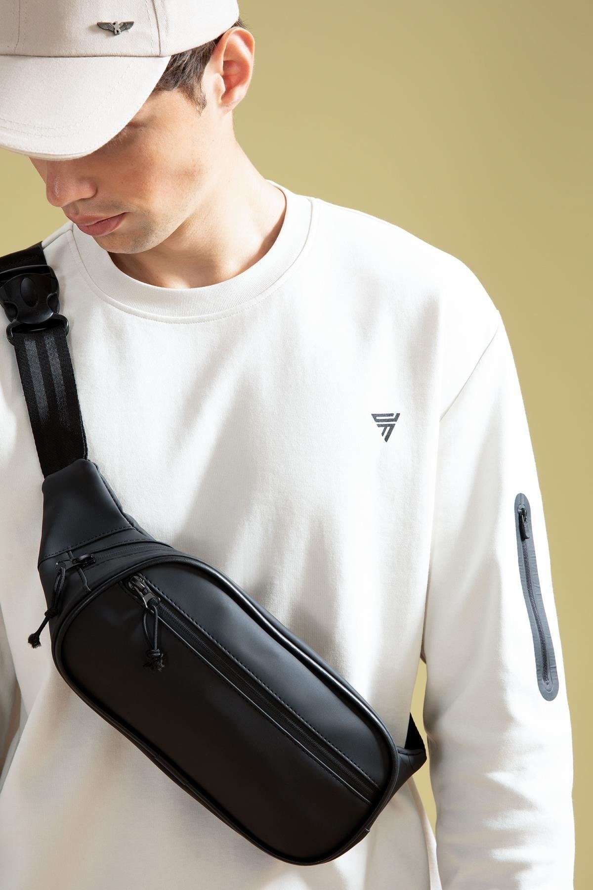 Men'S Large Faux Leather Waist Bag