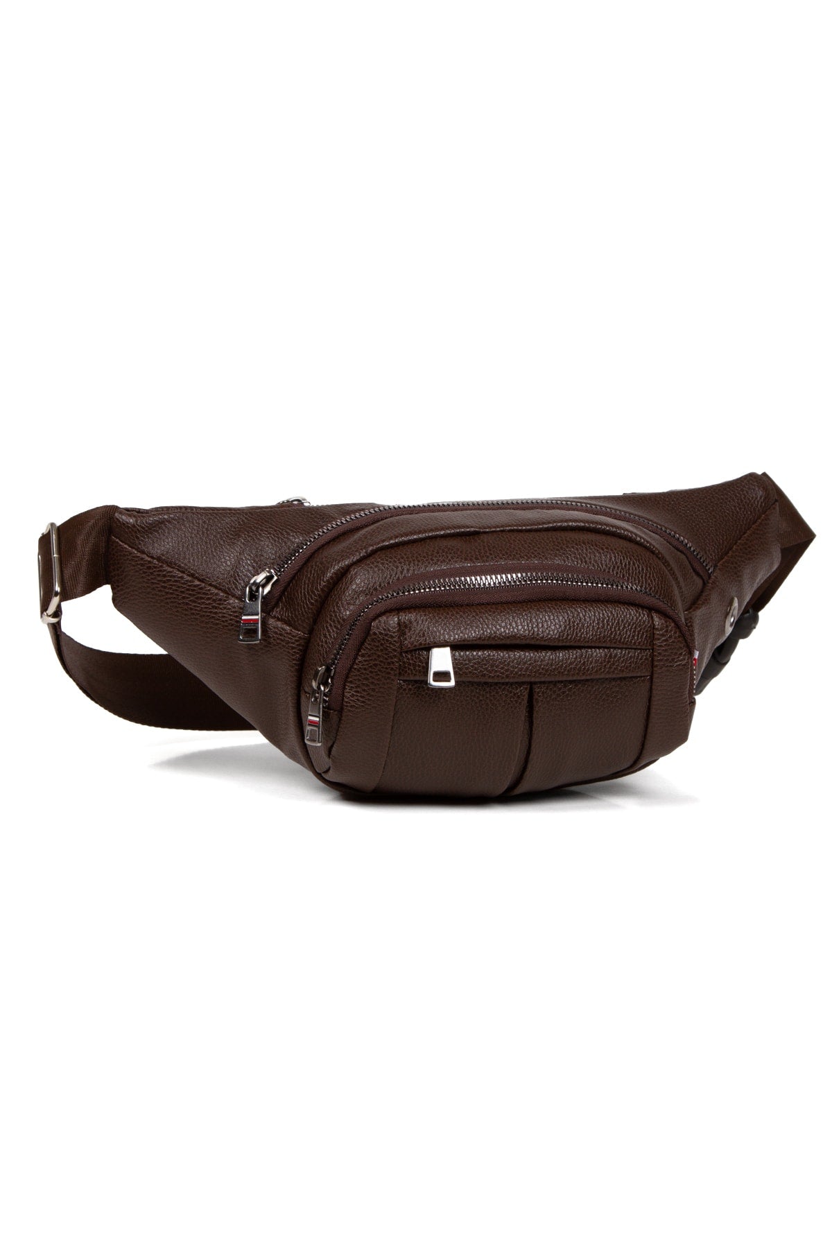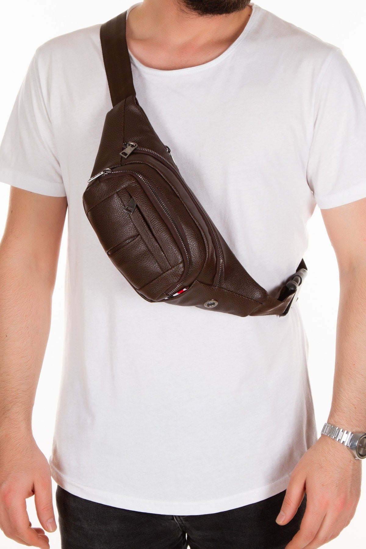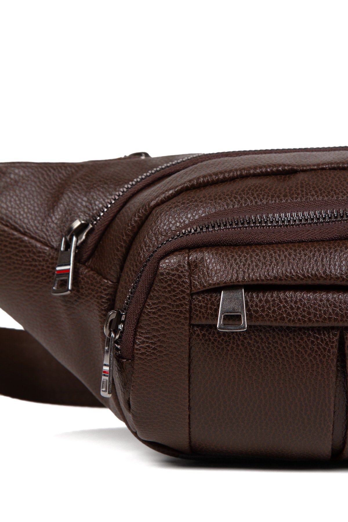 Men'S Leather Headphone Outlet Waterproof Cross Shoulder And Waist Bag (Daily Use Brown Color)