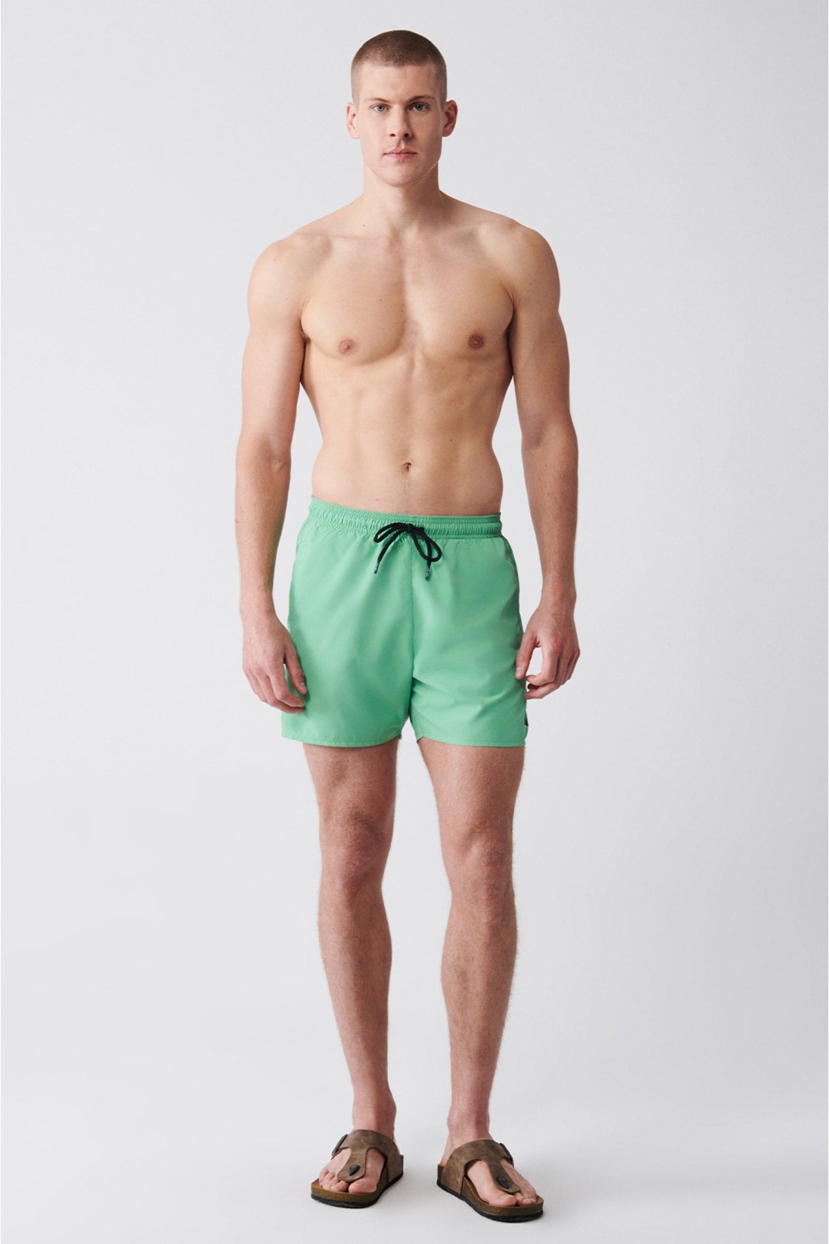 Men'S Light Green Quick Dry Standard Size Straight Swimwear Marine Shorts E003801