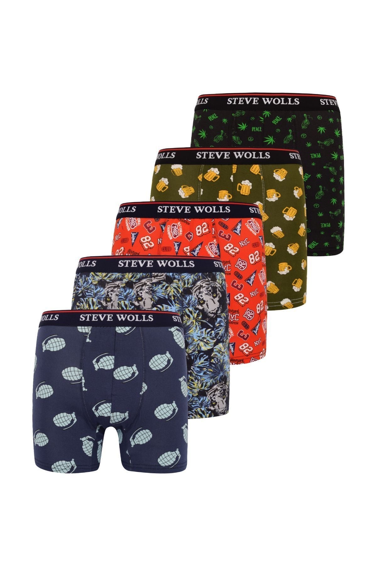 Men'S Mixed Pattern Pigment Printed 5-Piece Boxer Set