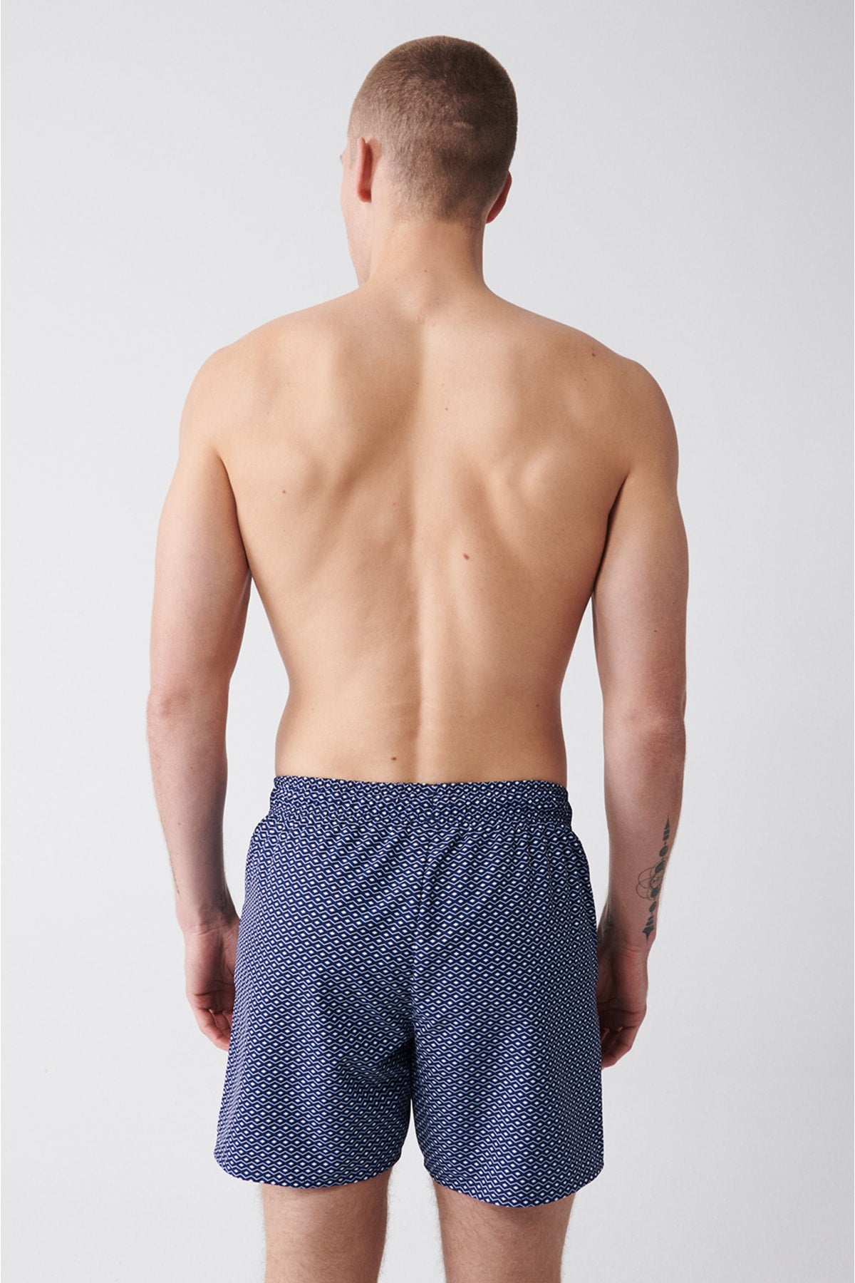 Men'S Navy - Blue Quick Dry Printed Standard Size Swimwear Marine Shorts E003802