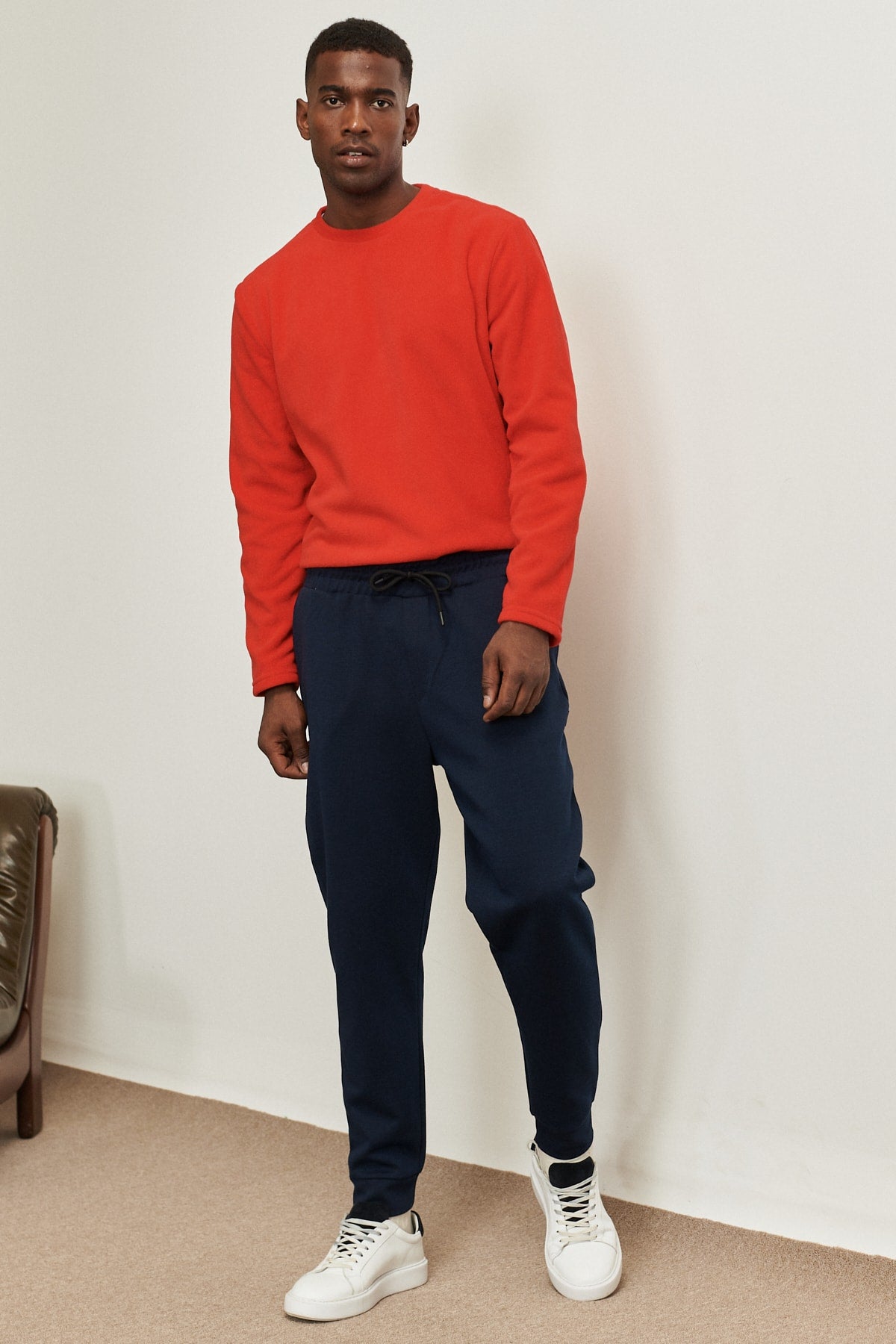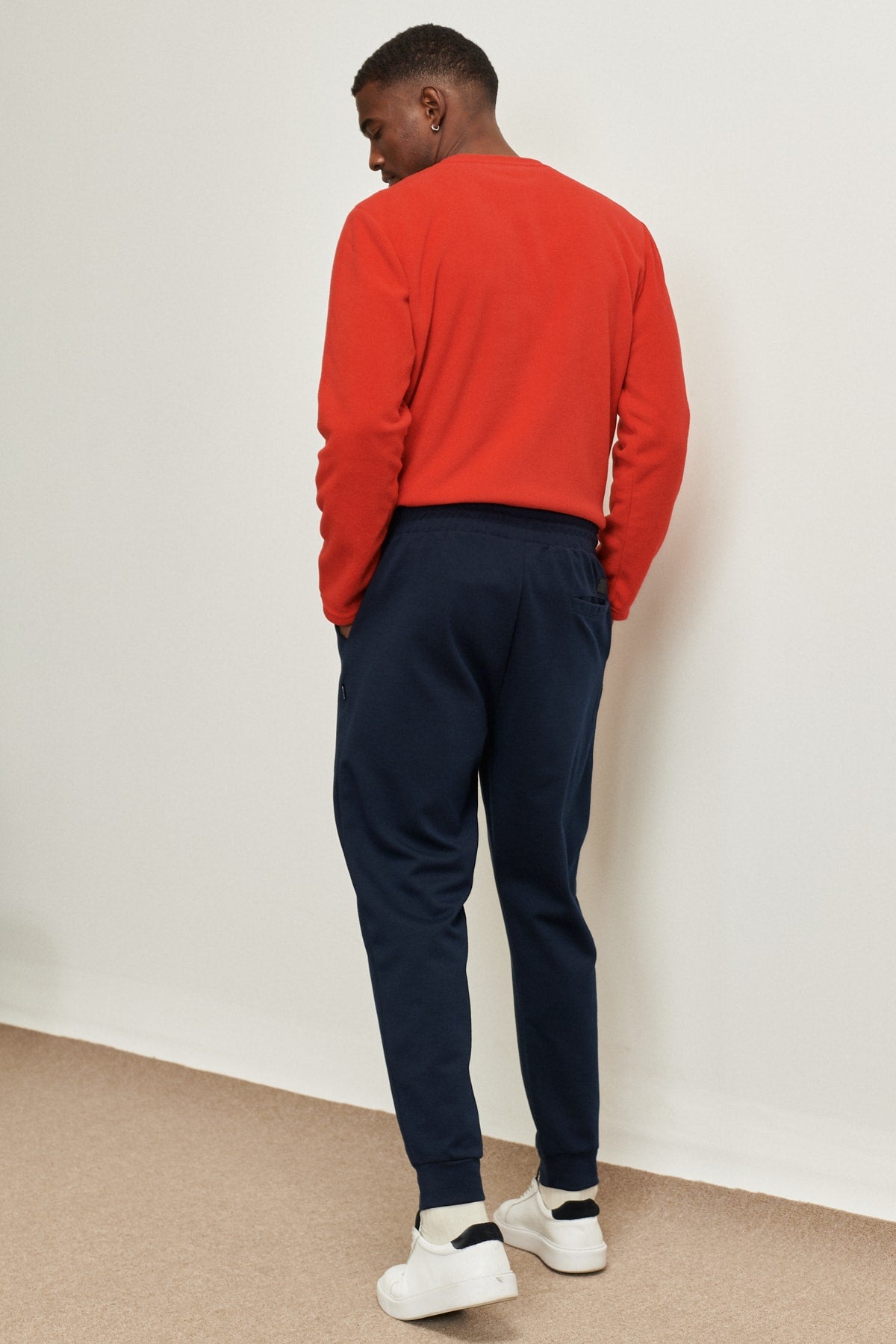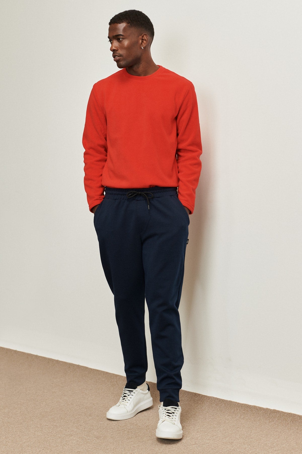 Men'S Navy Blue Standard Fit Normal Cut Waist And Elastic Elasticated Comfortable Sports Sweatpants