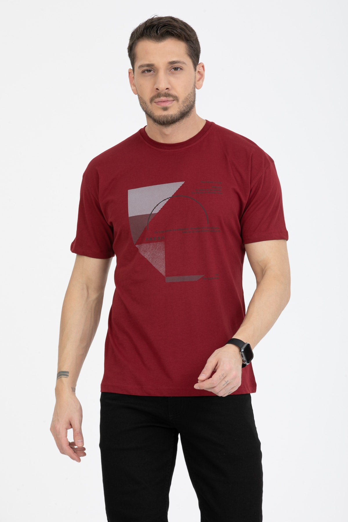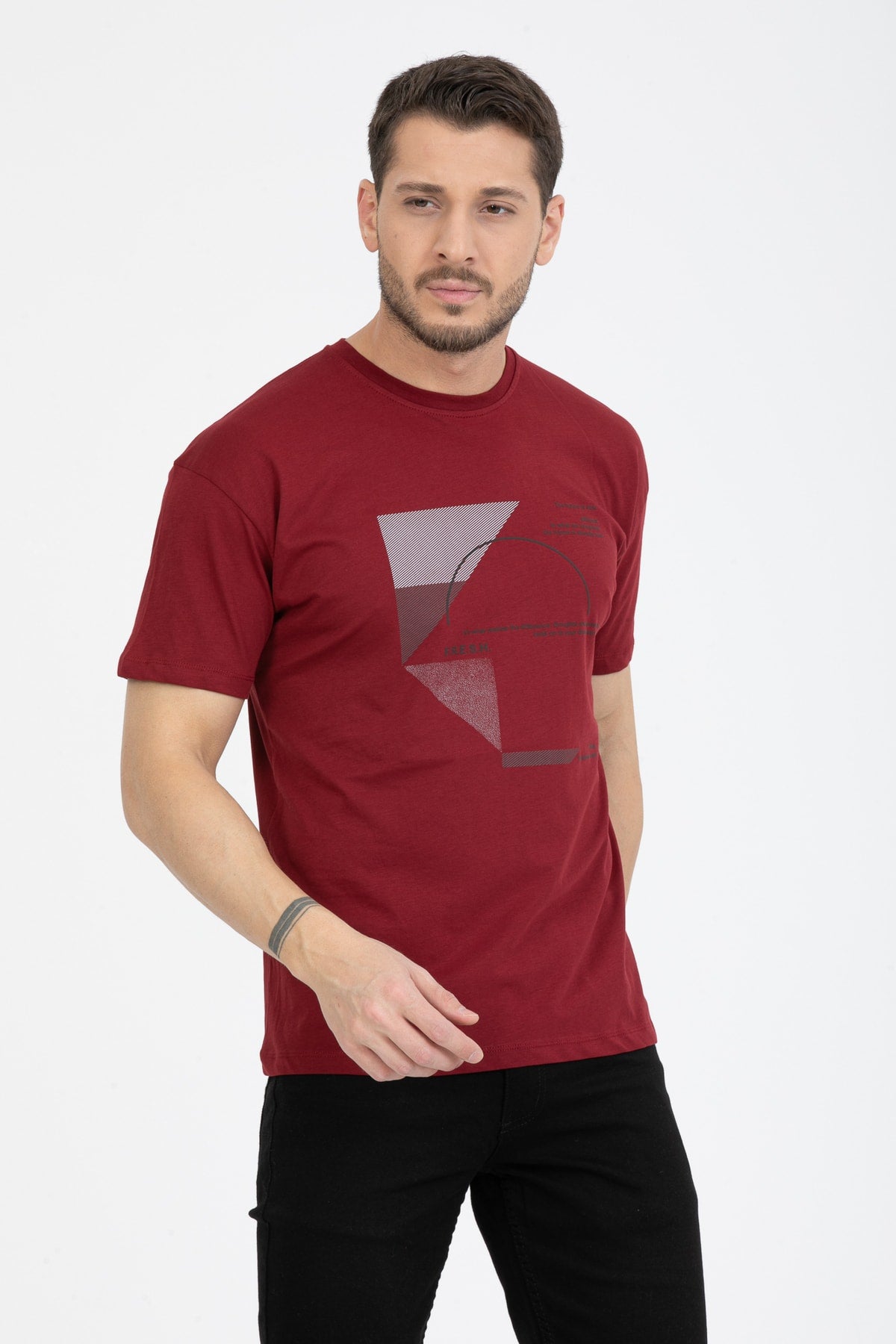 Men'S Printed T-Shirt Regular Fit Claret Red