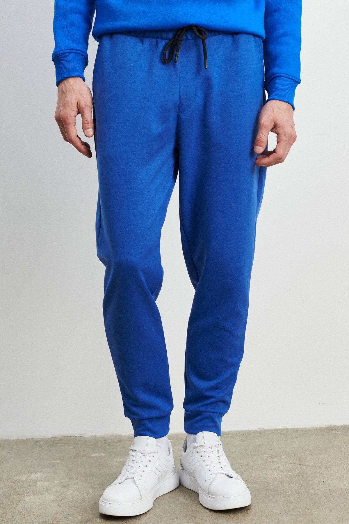 Men'S Sax Blue Standard Fit Normal Cut Elastic Waist And Legs Comfortable Sports Sweatpants