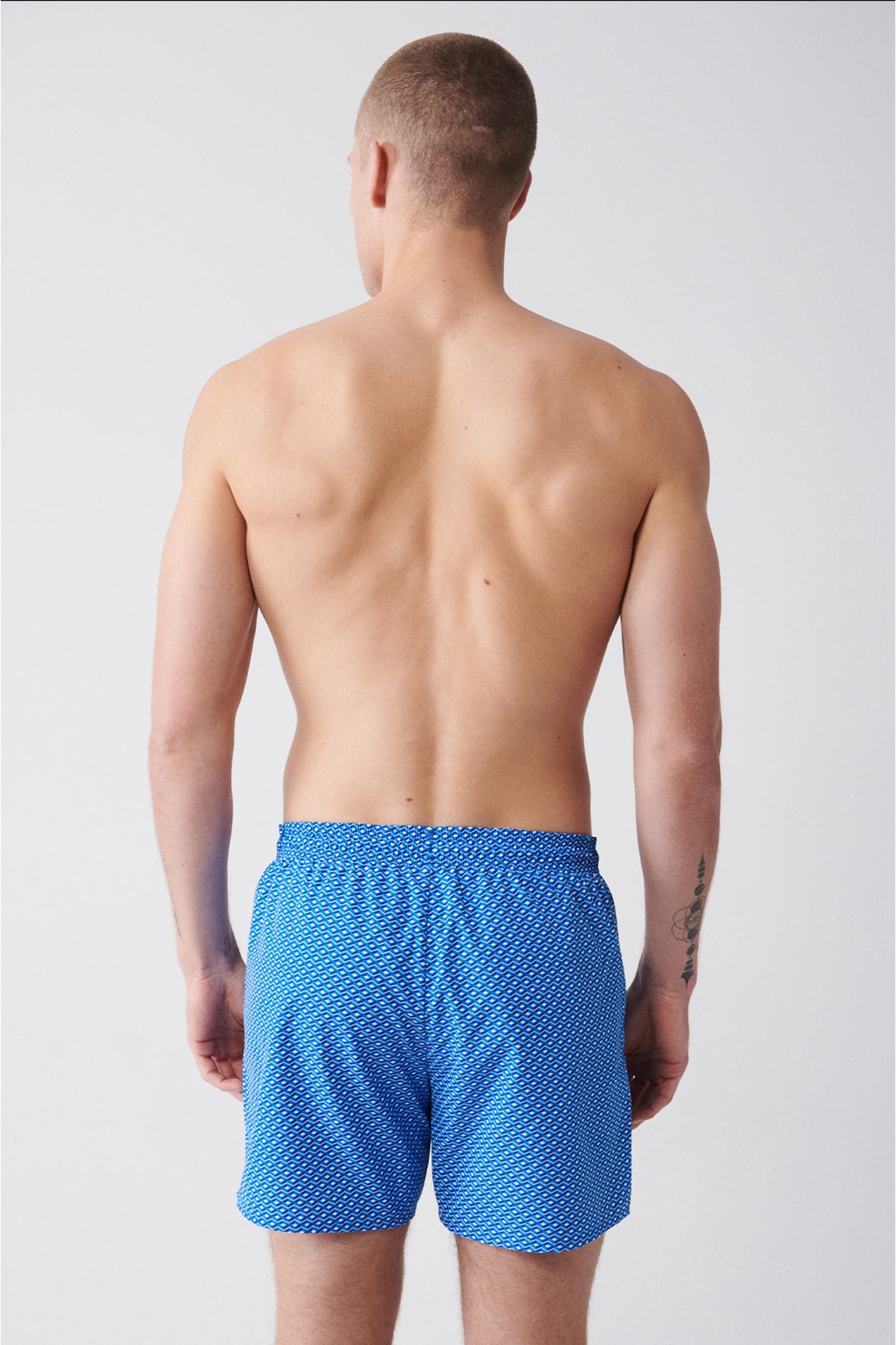 Men'S White-Blue Quick Dry Printed Standard Size Swimwear Marine Shorts E003802