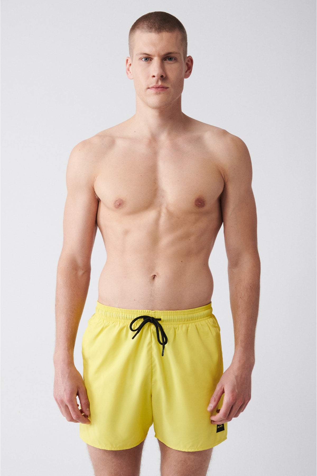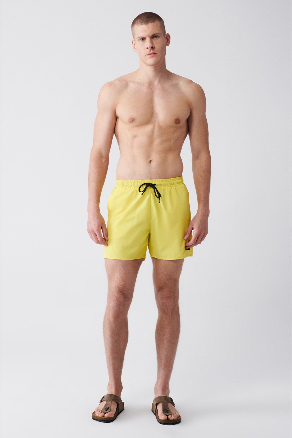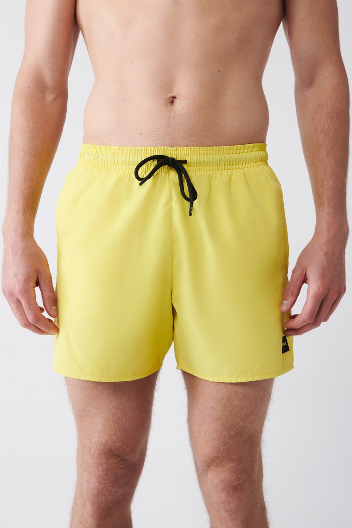 Men'S Yellow Quick Dry Standard Size Straight Swimwear Marine Shorts E003801