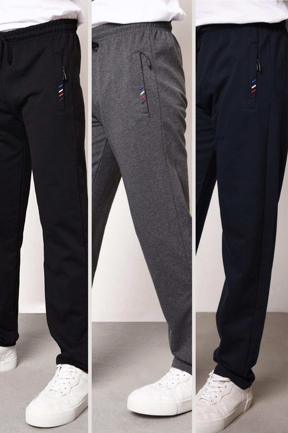 Men'S Zipper Pocket Embroidery Detail Straight Leg Comfortable Cut 3-Pack Sweatpants