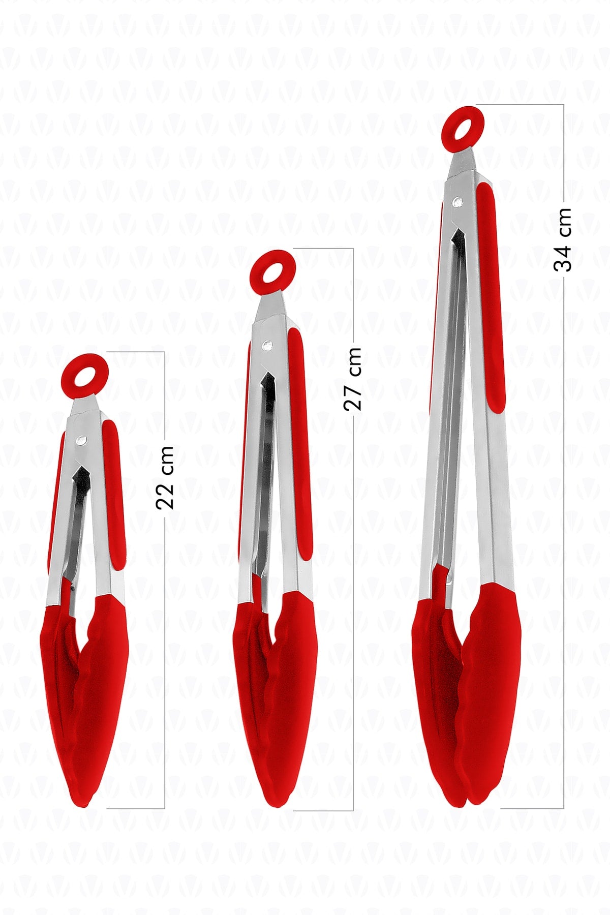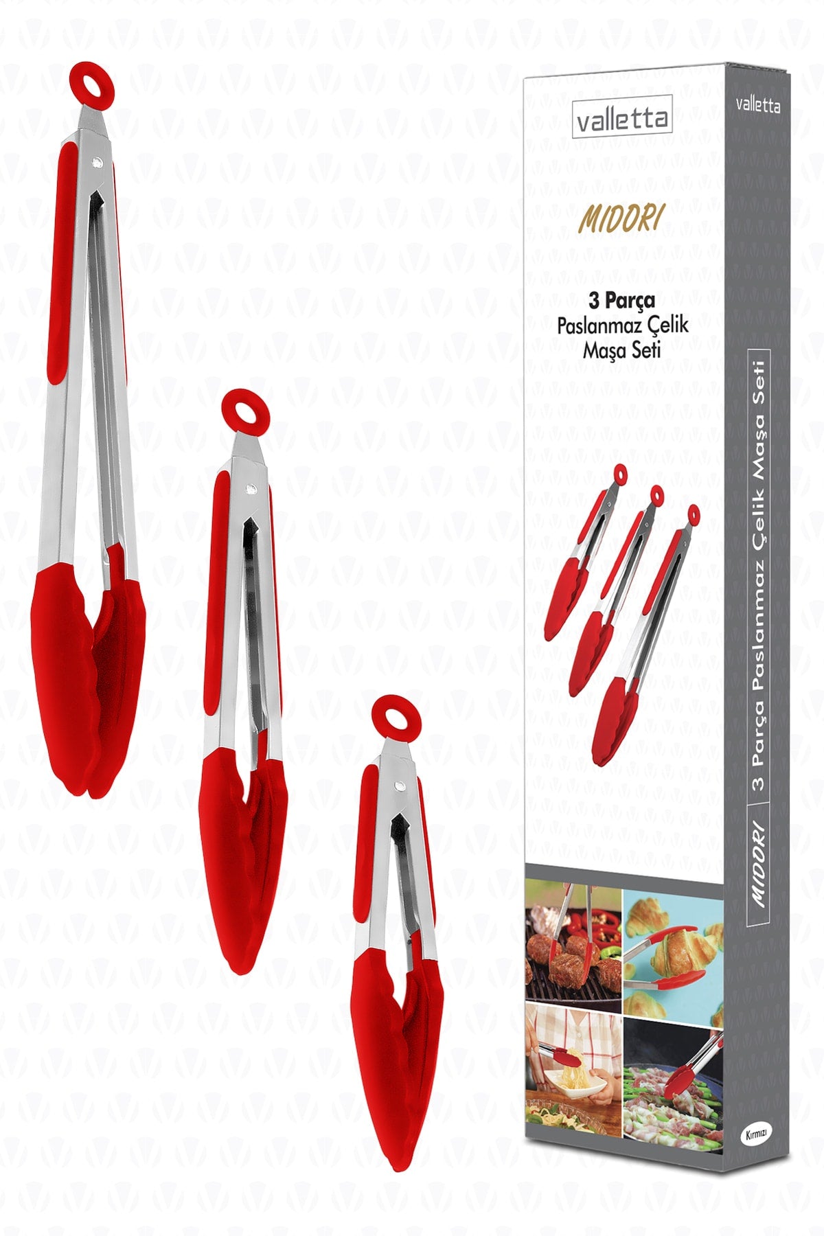Midori Metal Handle Silicone Tip Lock System Smart 3 Tongs Set Red
