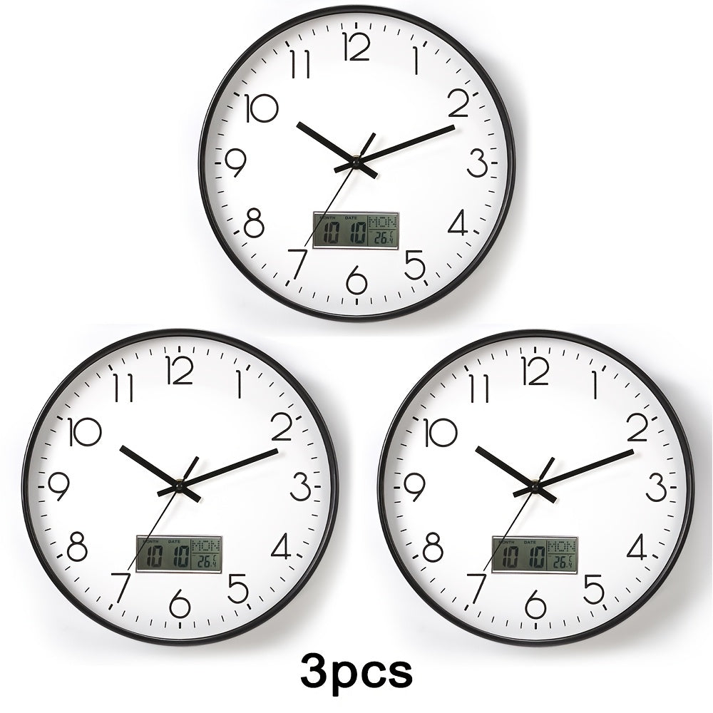 [Modern Digital Wall Clock] 1/2/3pcs Modern Black and White Digital Wall Clock | 12-inch Silent Quartz Movement with Calendar, Artistic Home Decoration for Living Room, Kitchen, Bedroom, Office, Christmas Gift, Battery Not Included