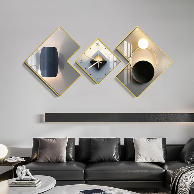 [Modern Wall Clock] 3pcs Modern Geometric Wall Clock | Large Decorative Clocks Set with Silent Movement, Light Luxury Metal Frame Creative Wall Decor for Living Room Home Office