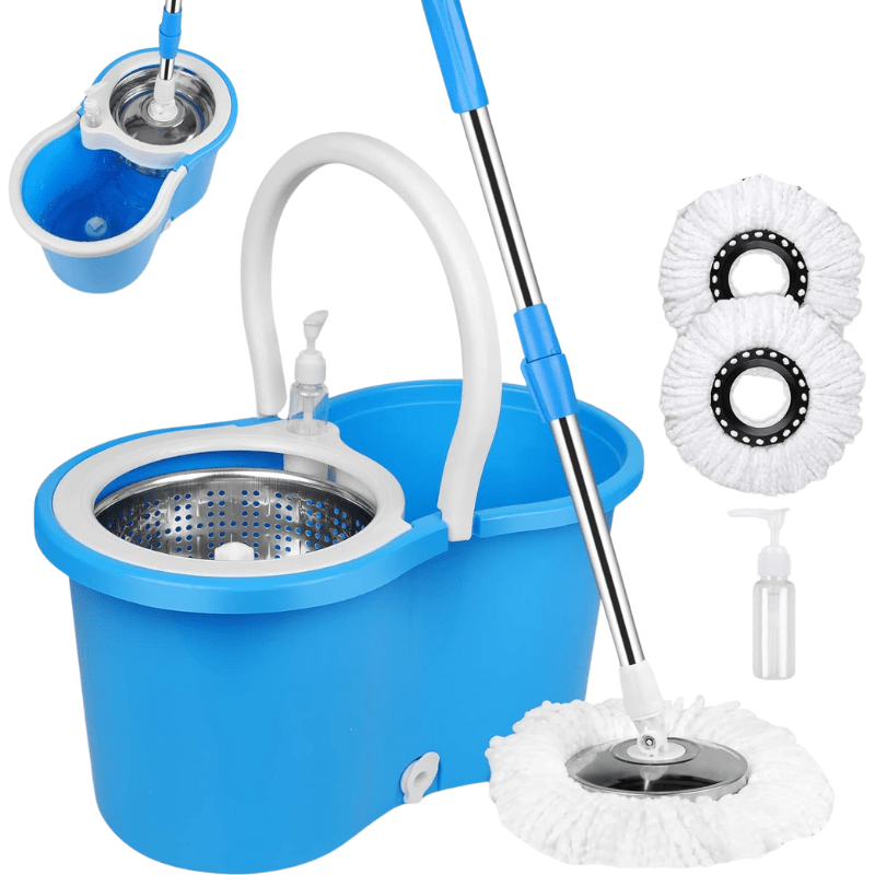Mop and Bucket Set, 360° Spin Mop and Bucket with Wringer Set and 4 Microfiber Mop Refills for Black, 2 Microfiber Mop Refills for Blue, Stainless Steel 44" Extended Handle Spinning Mop Bucket System for Floor Cleaning