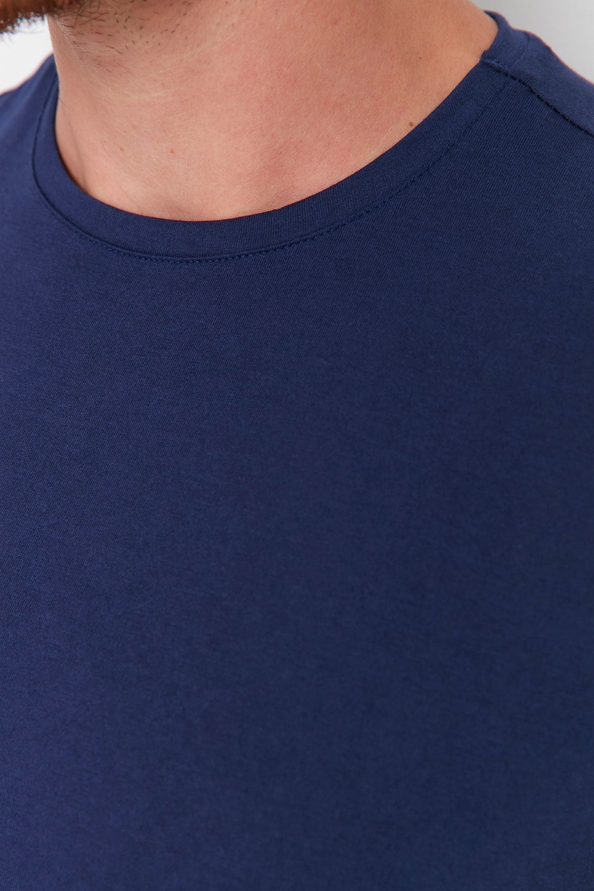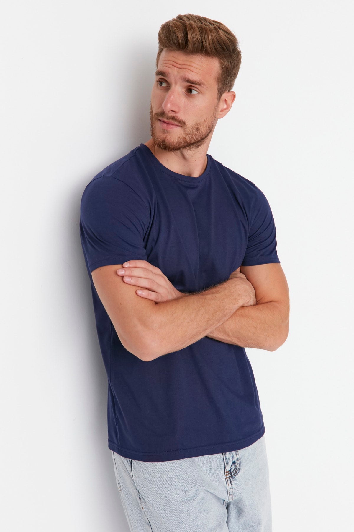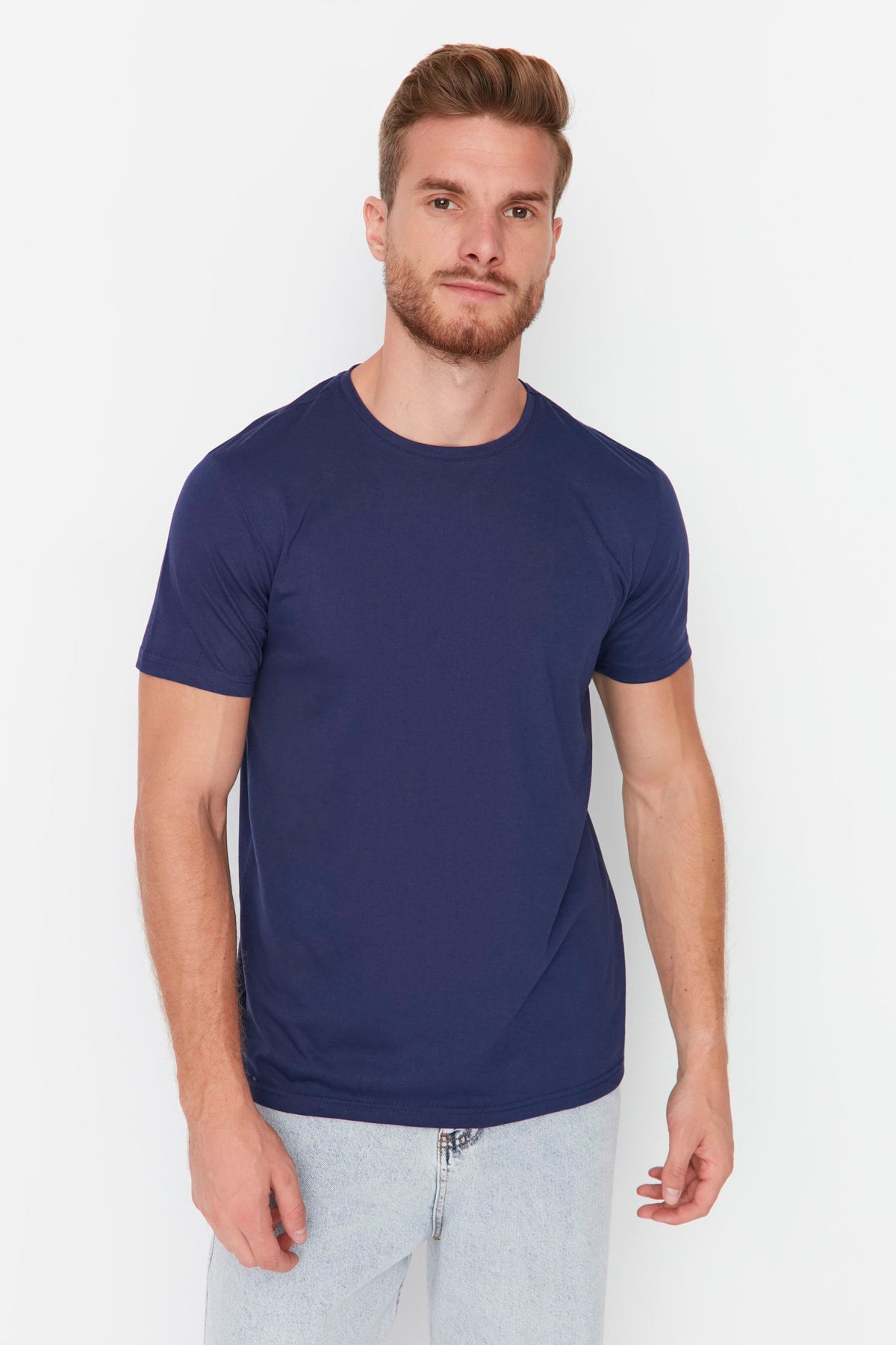 Navy Blue Men'S Basic Regular/Normal Fit Crew Neck Short Sleeved T-Shirt