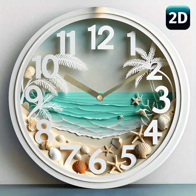One Beach-Themed Silent Wall Clock Featuring a Seaside Design, Ideal for Summer Or Coastal Decoration.