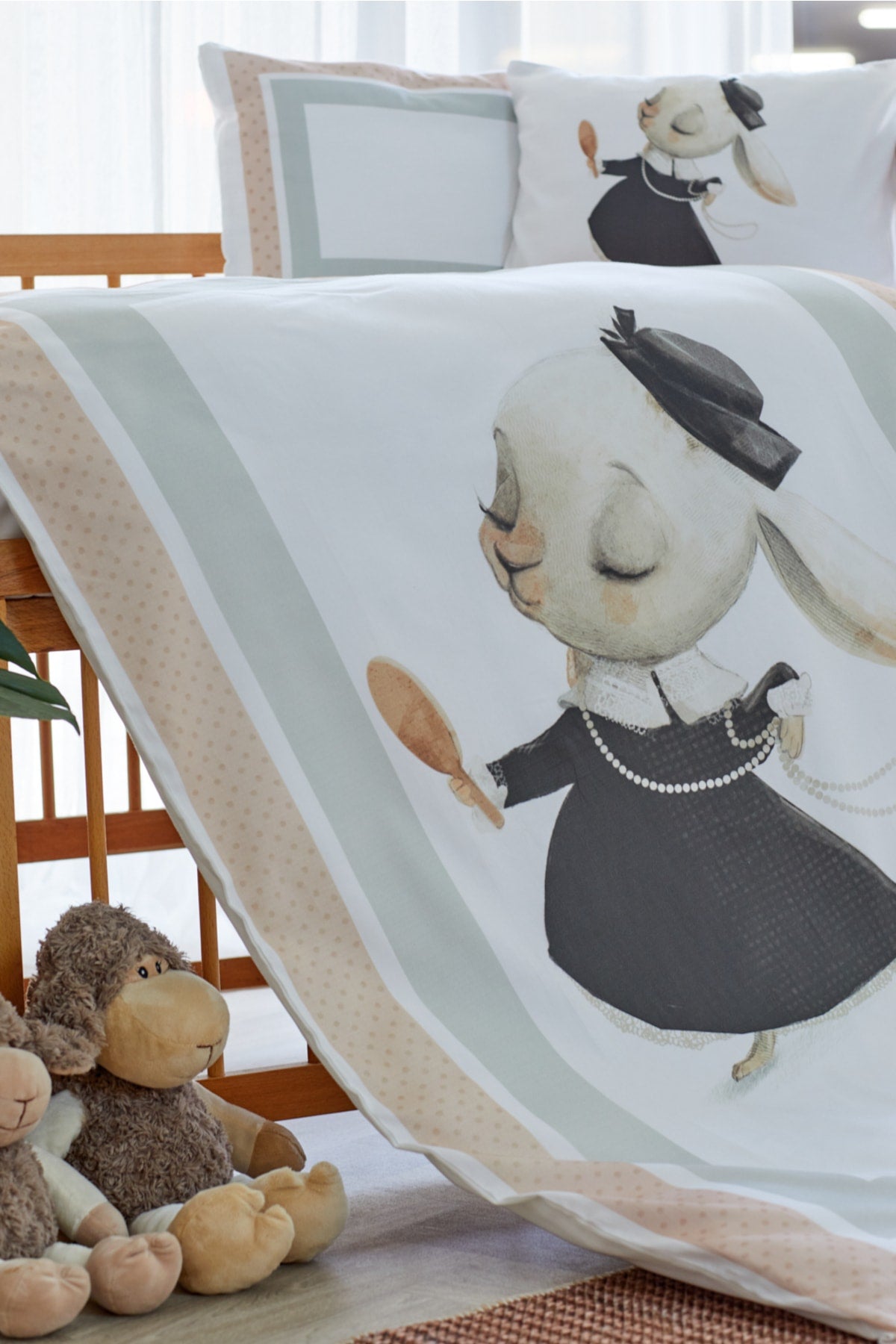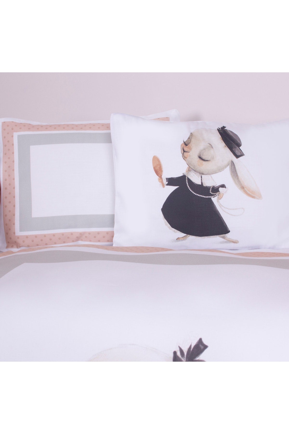 Organic Printed Cotton Satin Baby Duvet Cover Set - Pink Rabbit Theme