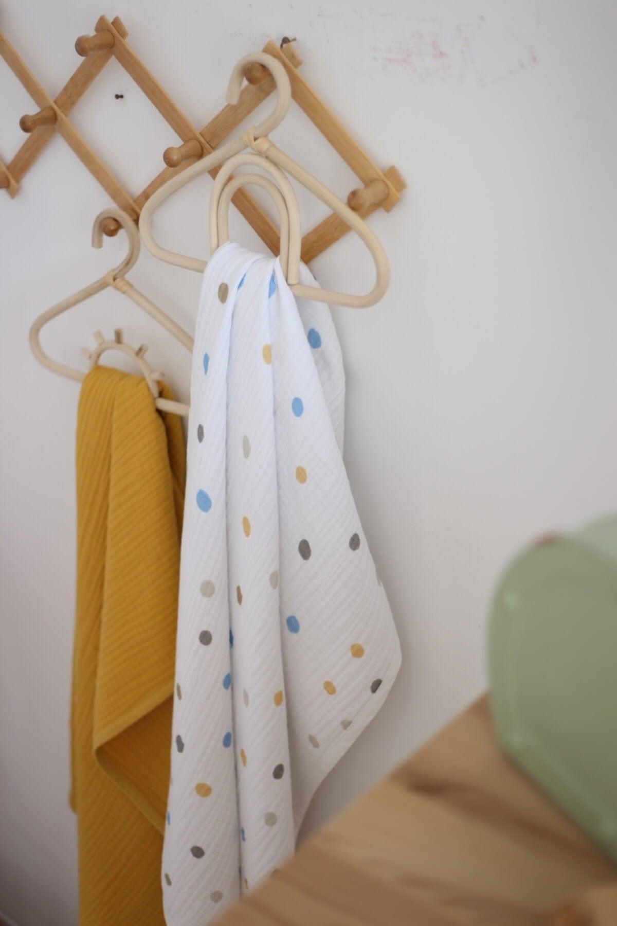 Organik pamuklu 4 katlı desenli muslin bebek battaniyesi - Renkli Polka Nokta temalı