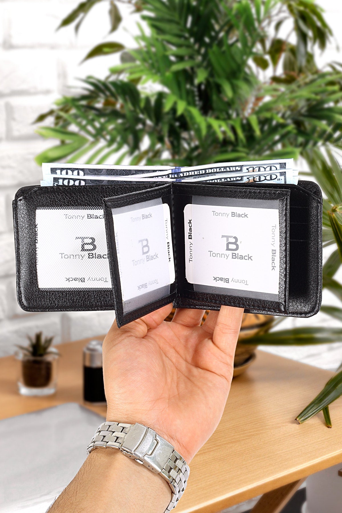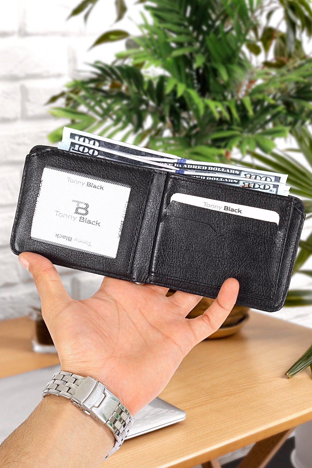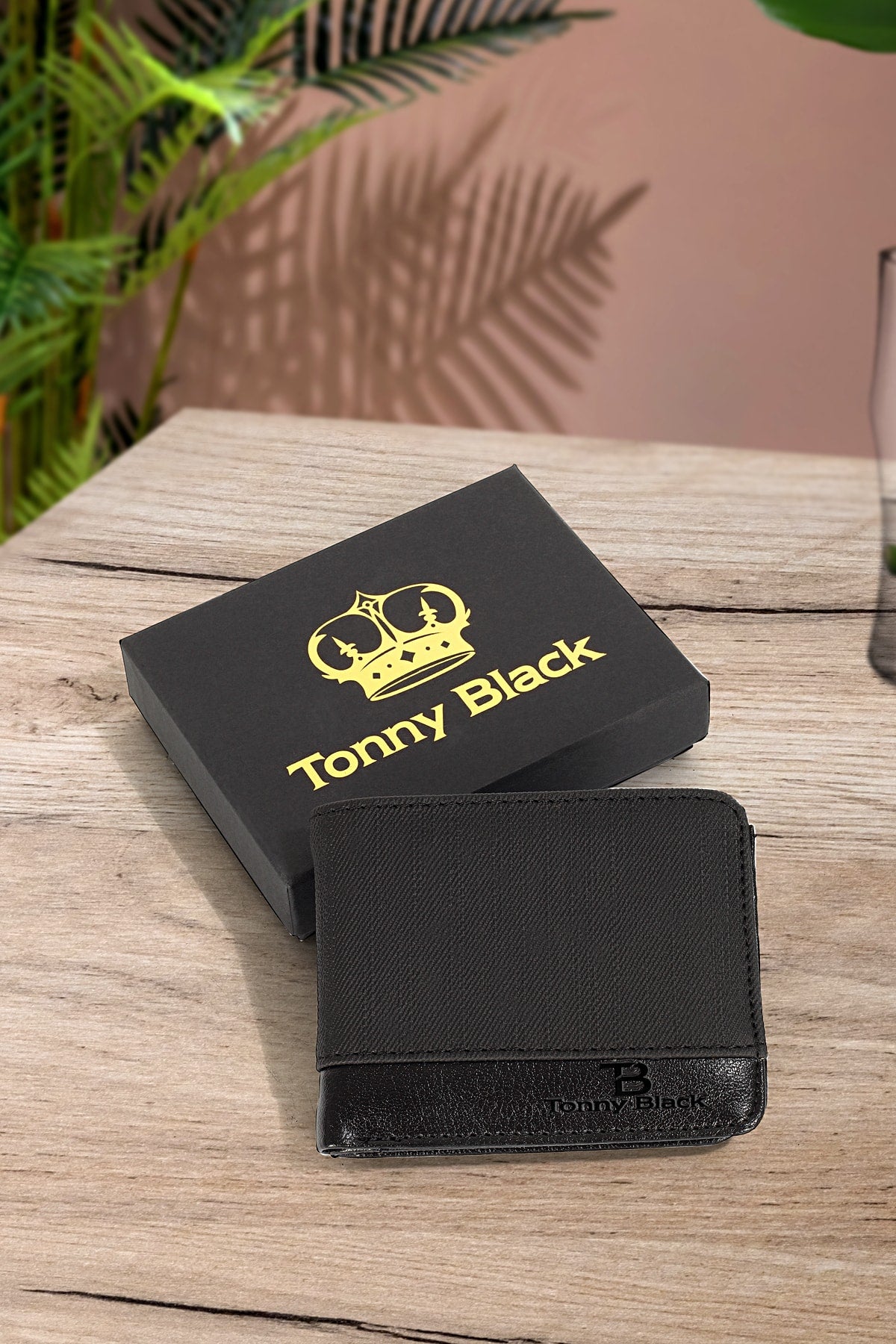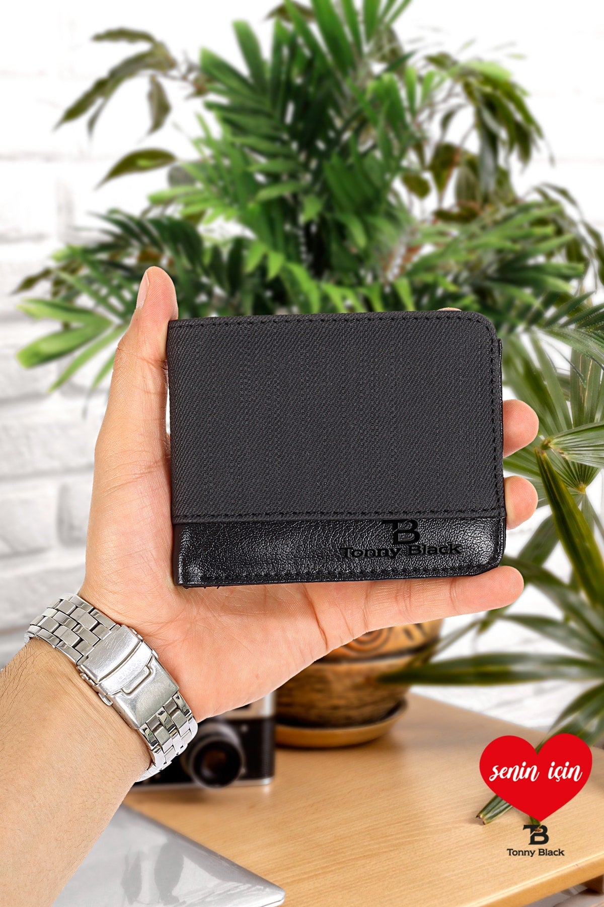Original Men'S Black Sport & Stylish Boxed 10 Card Holder 3 Id And 1 Paper Money Compartment Leather Fabric Wallet