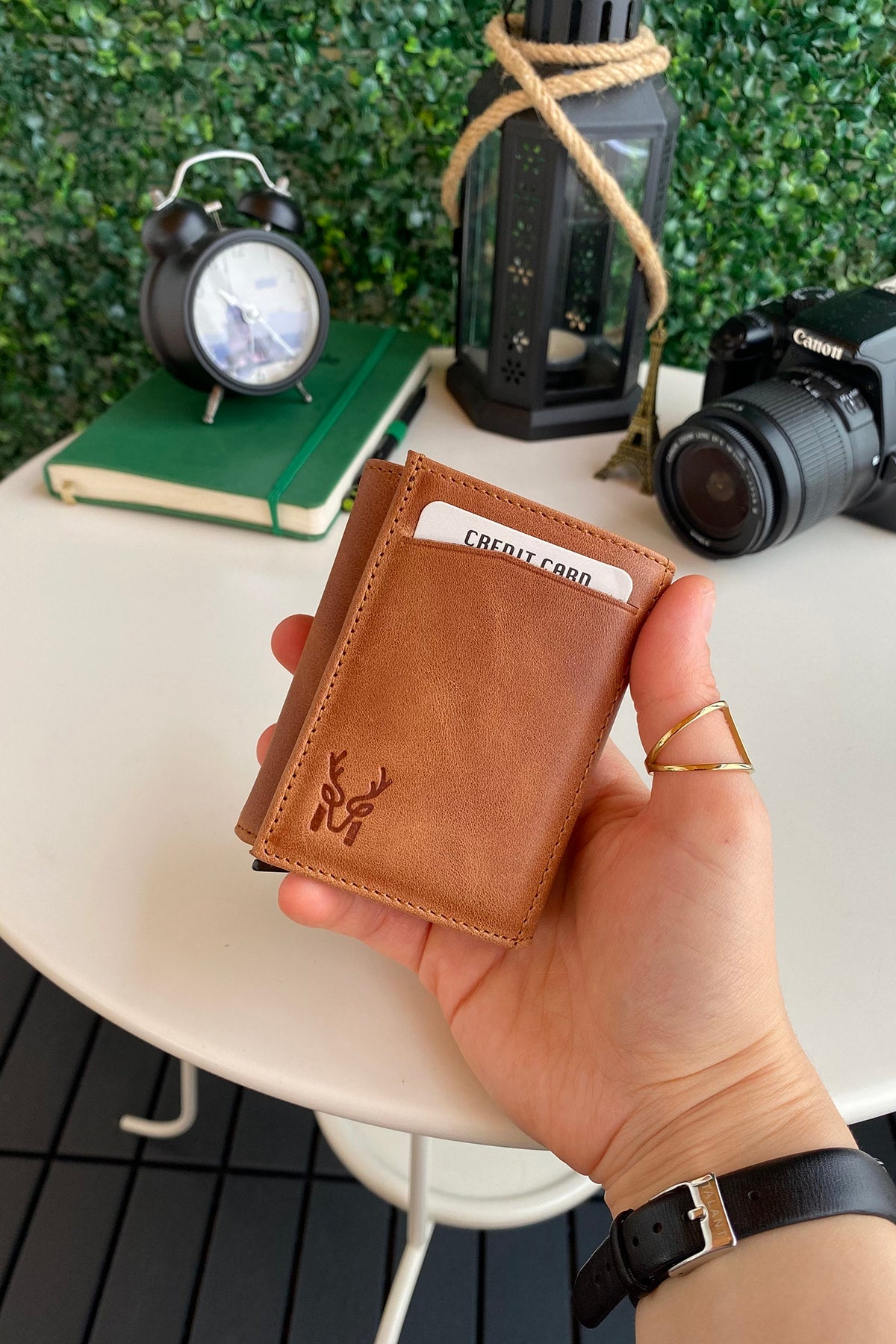 Pescol - Genuine Leather Rfid Protected Mechanism Taba Smart Card Holder / Wallet, Top Level Craftsmanship