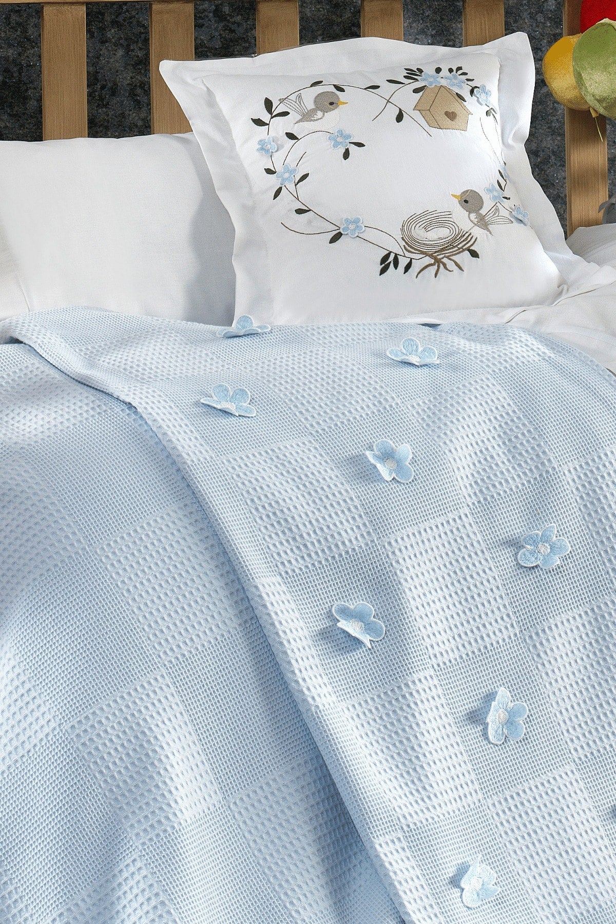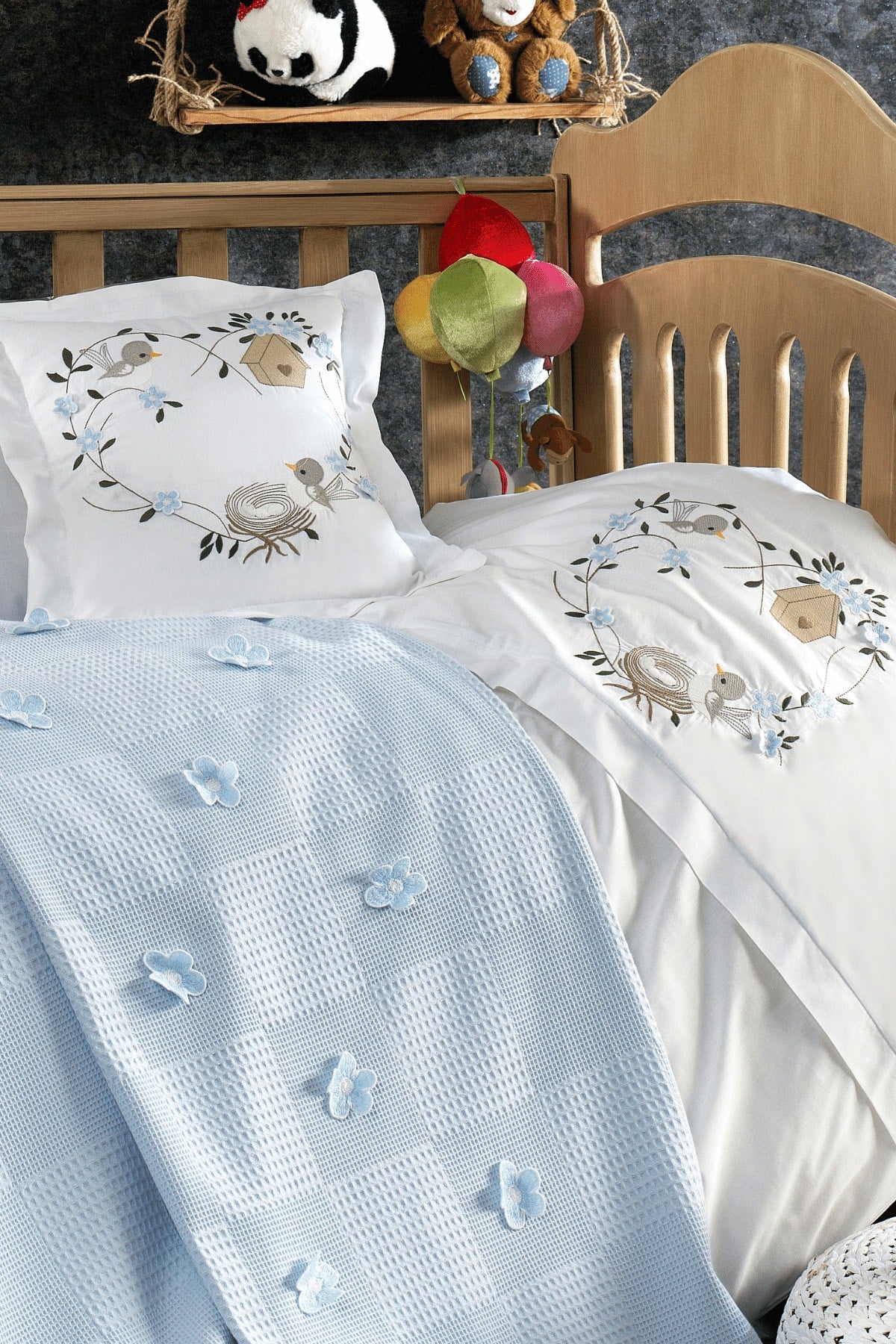 Pieces 100% Cotton, 3D Flower And Bird Patterned Cemre Blue Baby Duvet Cover Set