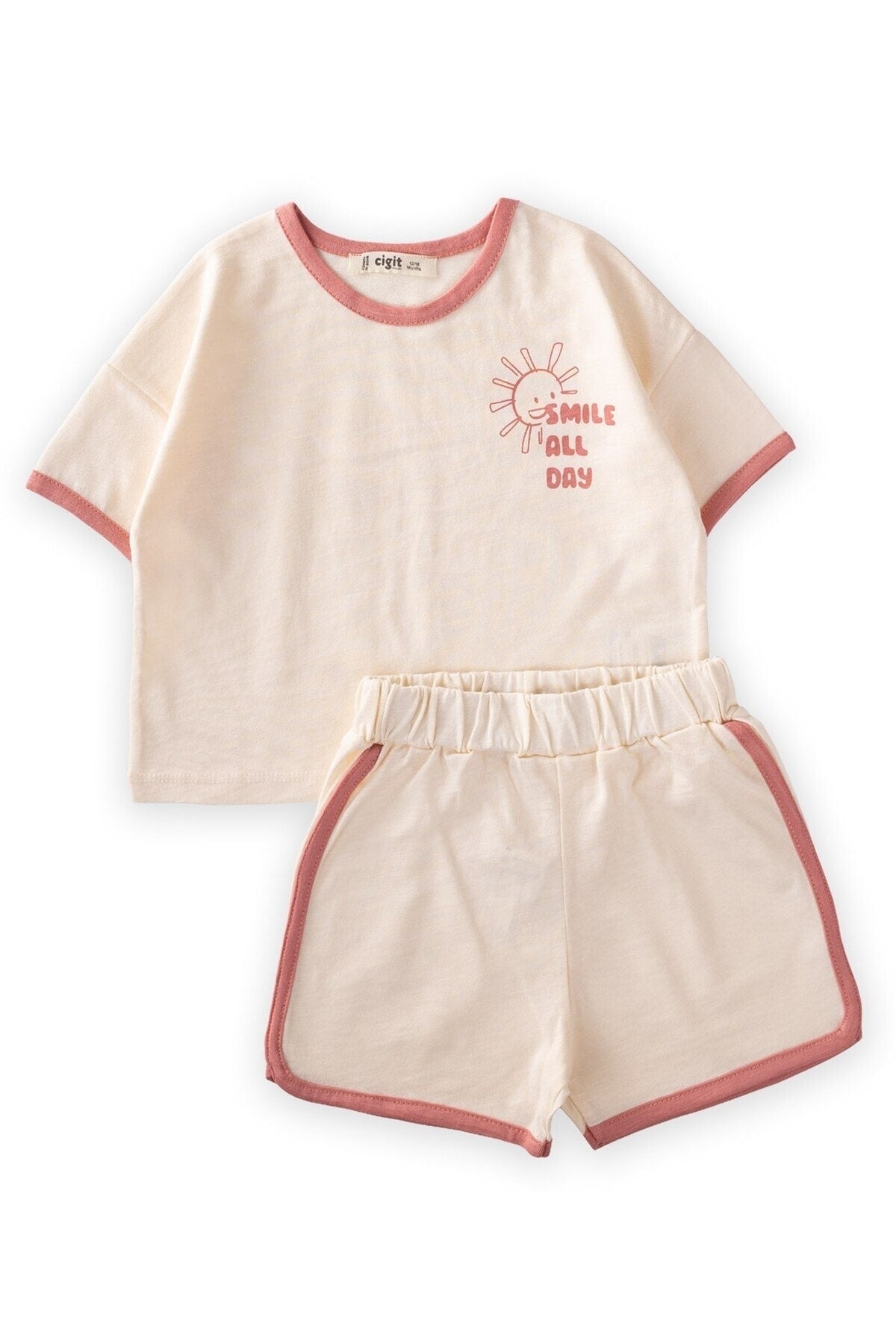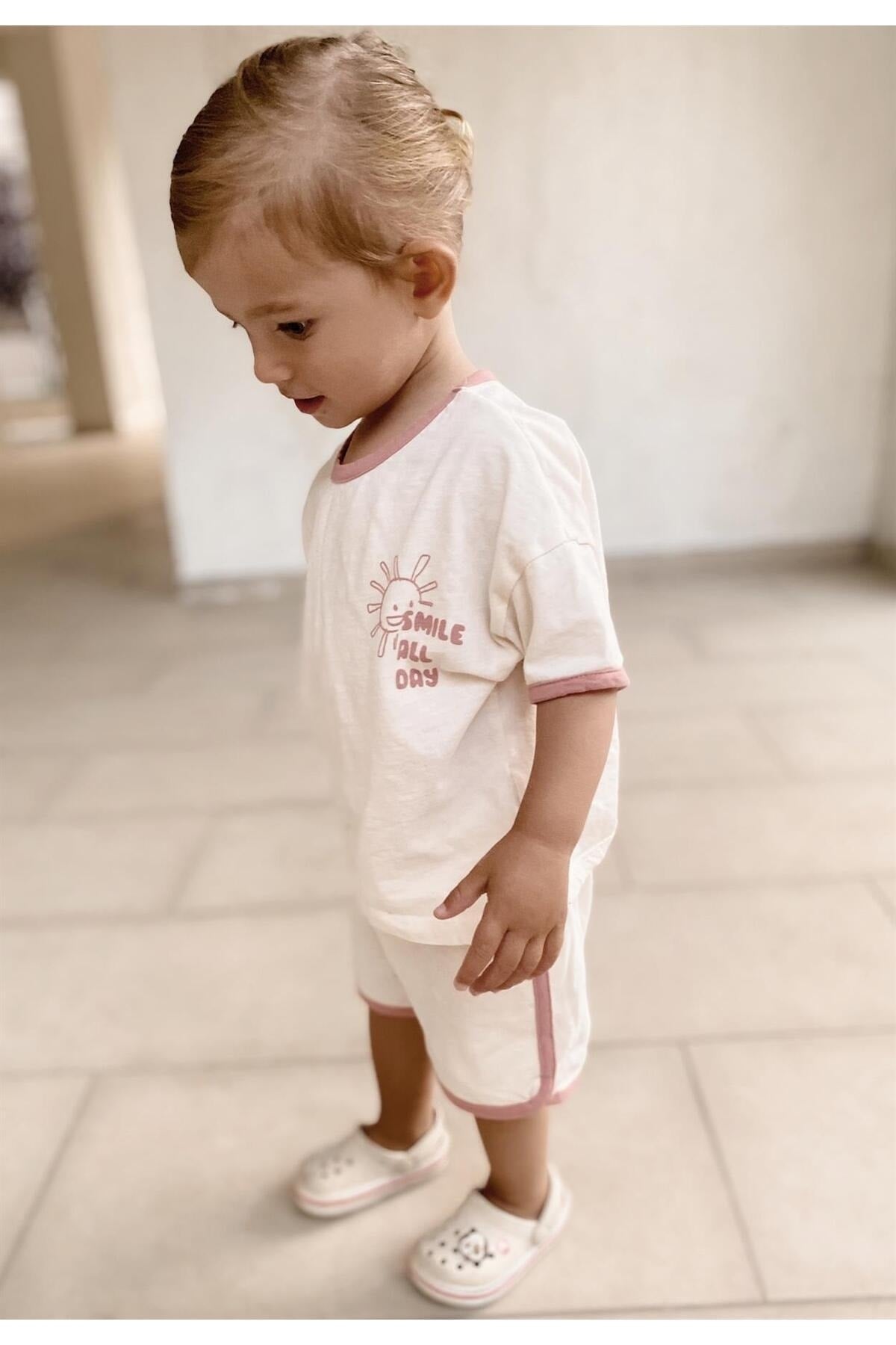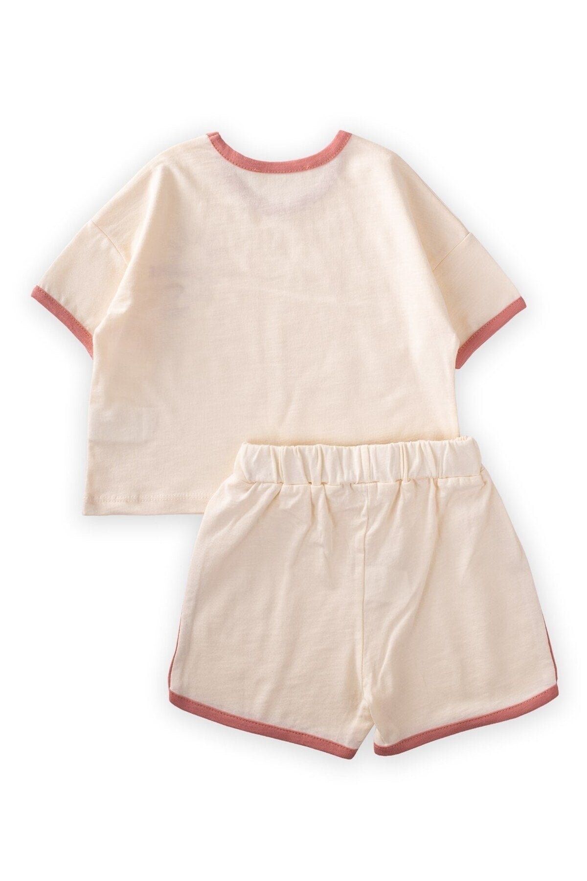 Piping Garnish Oversize Shorts Set 1-7 Years Sand