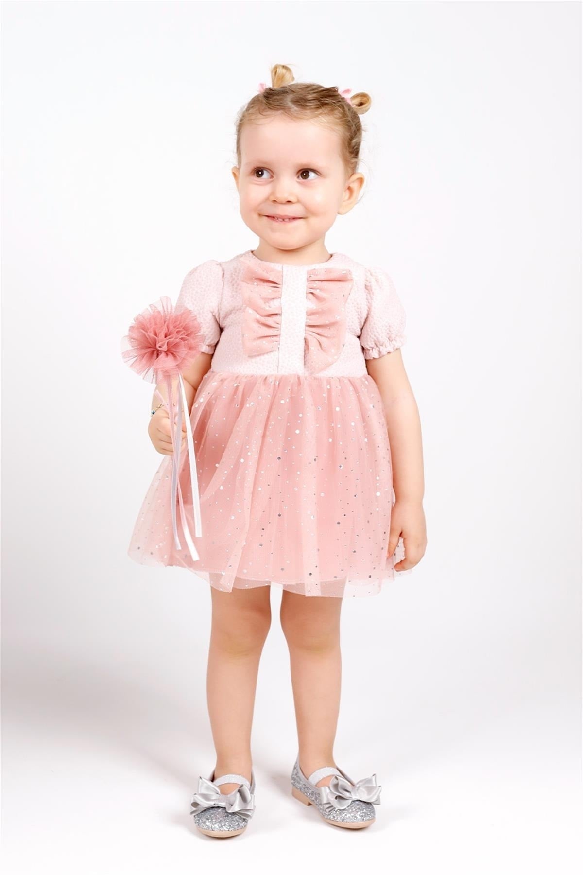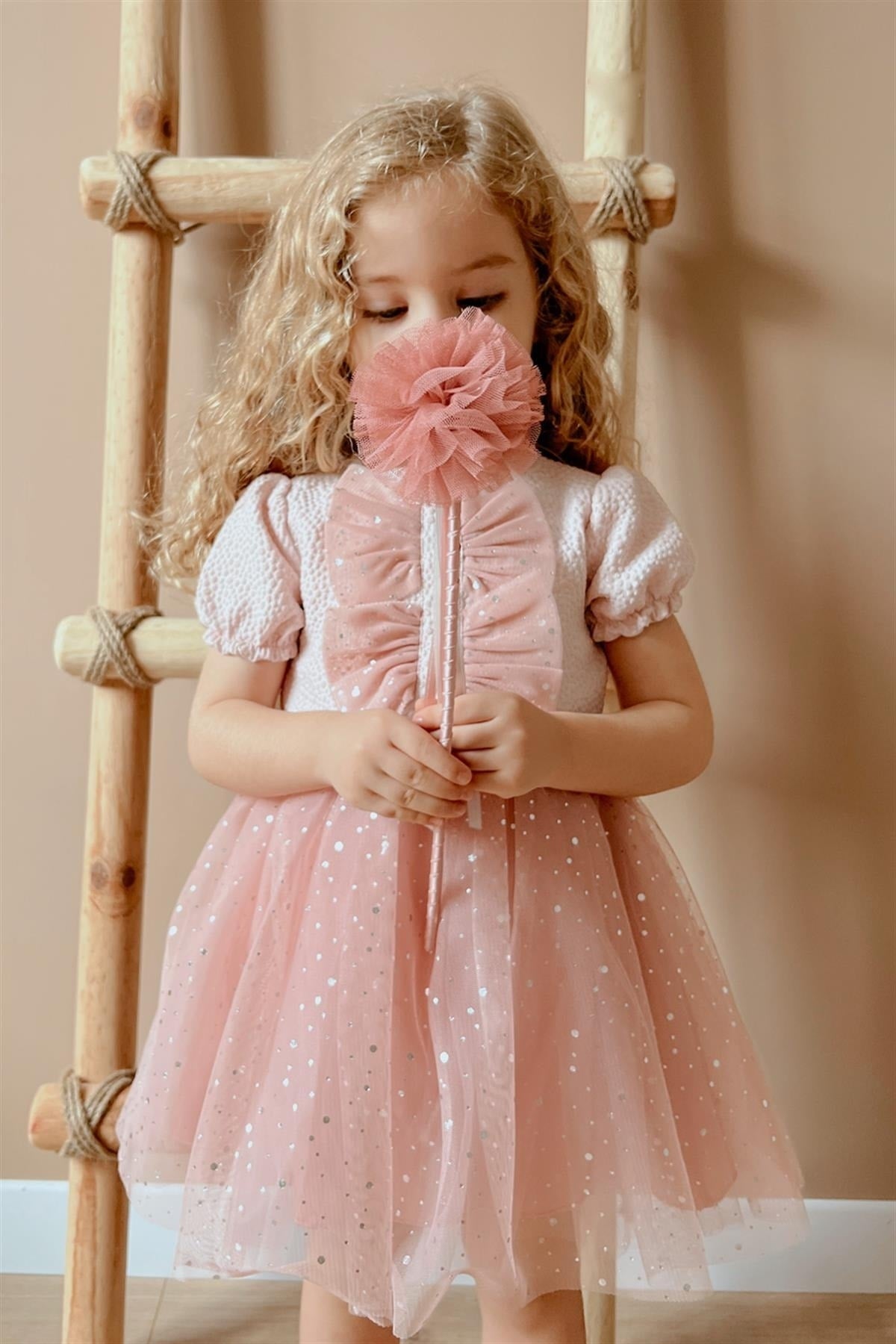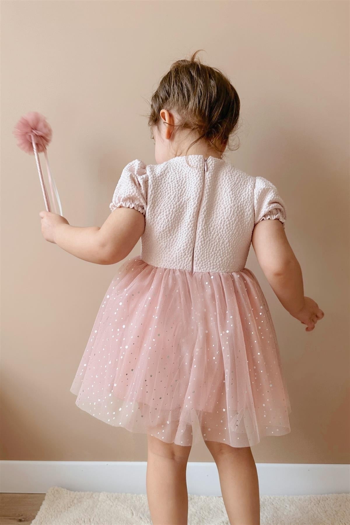 Powder Glittery Short Sleeve Tutu Skirt Girls Dress - Felicia