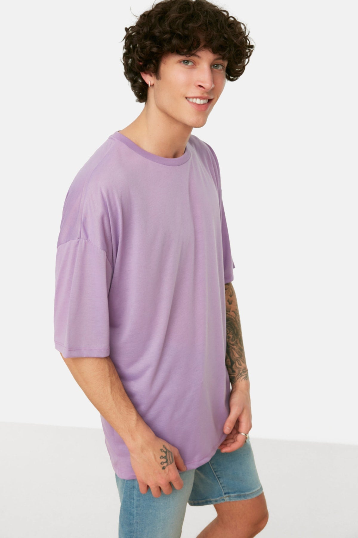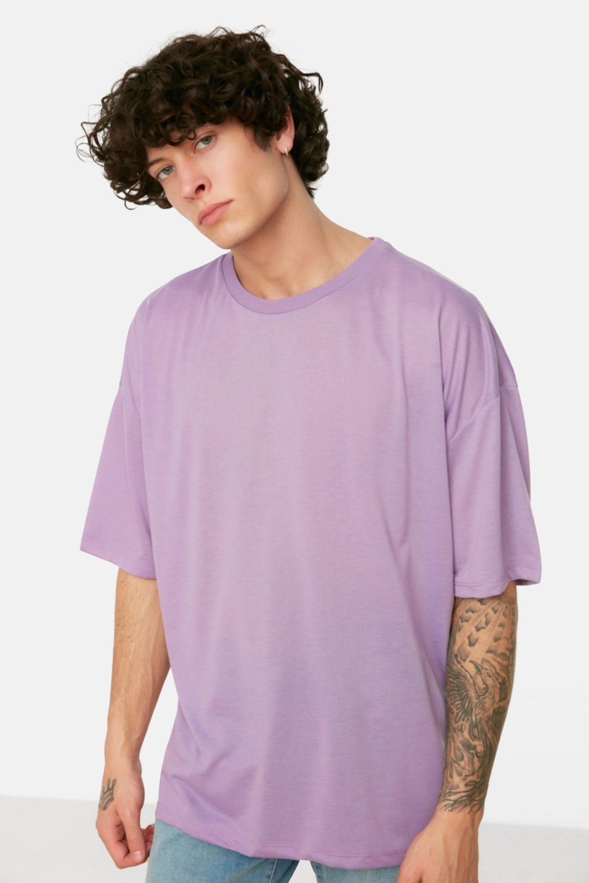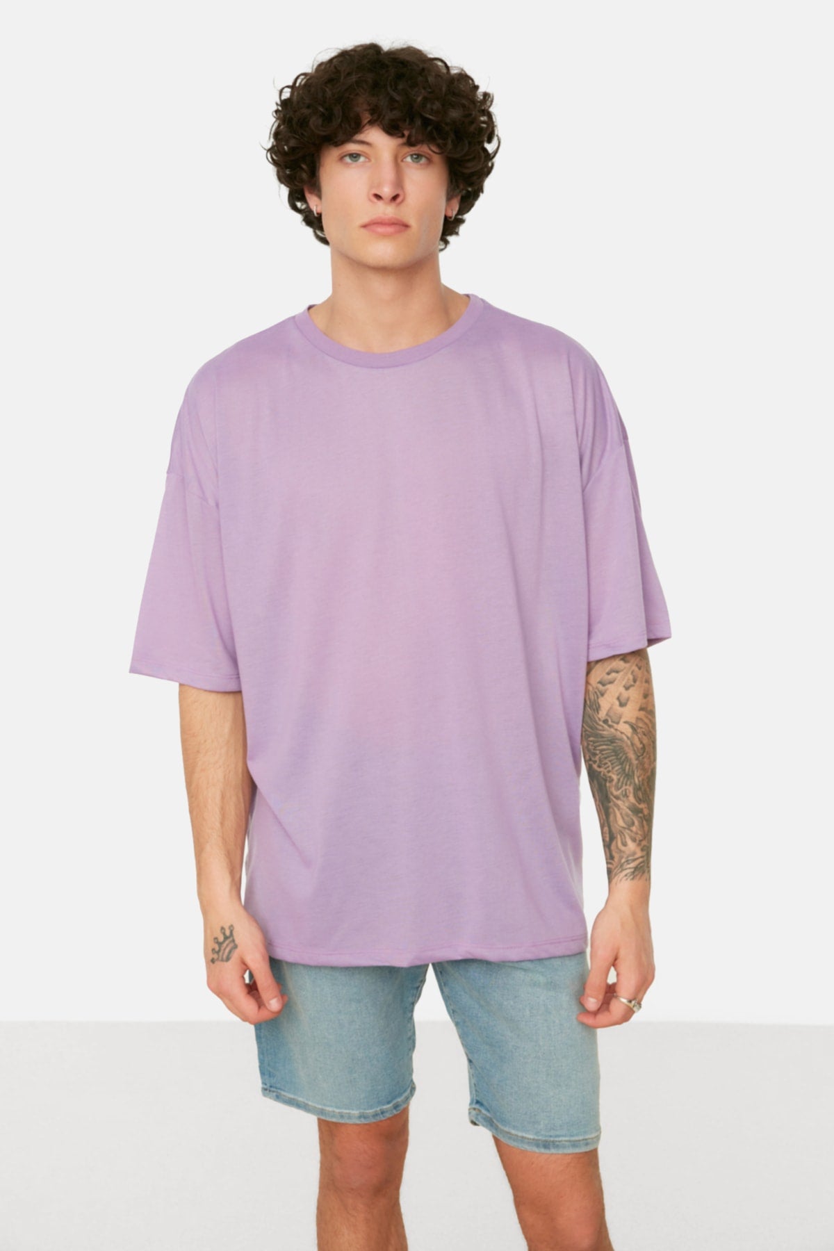 Purple Men'S Basic Oversize Crew Neck Short Sleeved T-Shirt