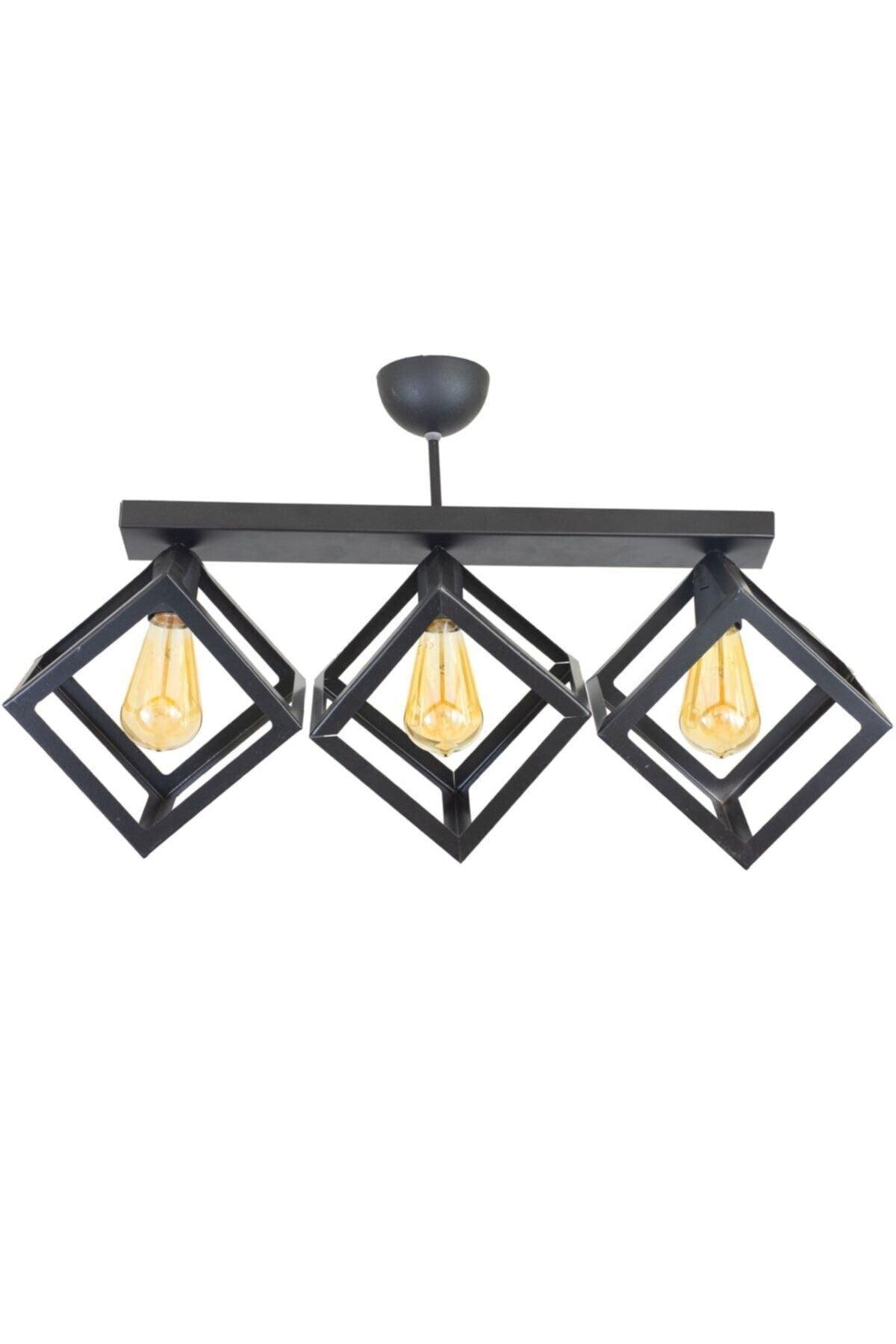Rustik Retro Desen Geometrik Plafonyer Metal Küp Avize