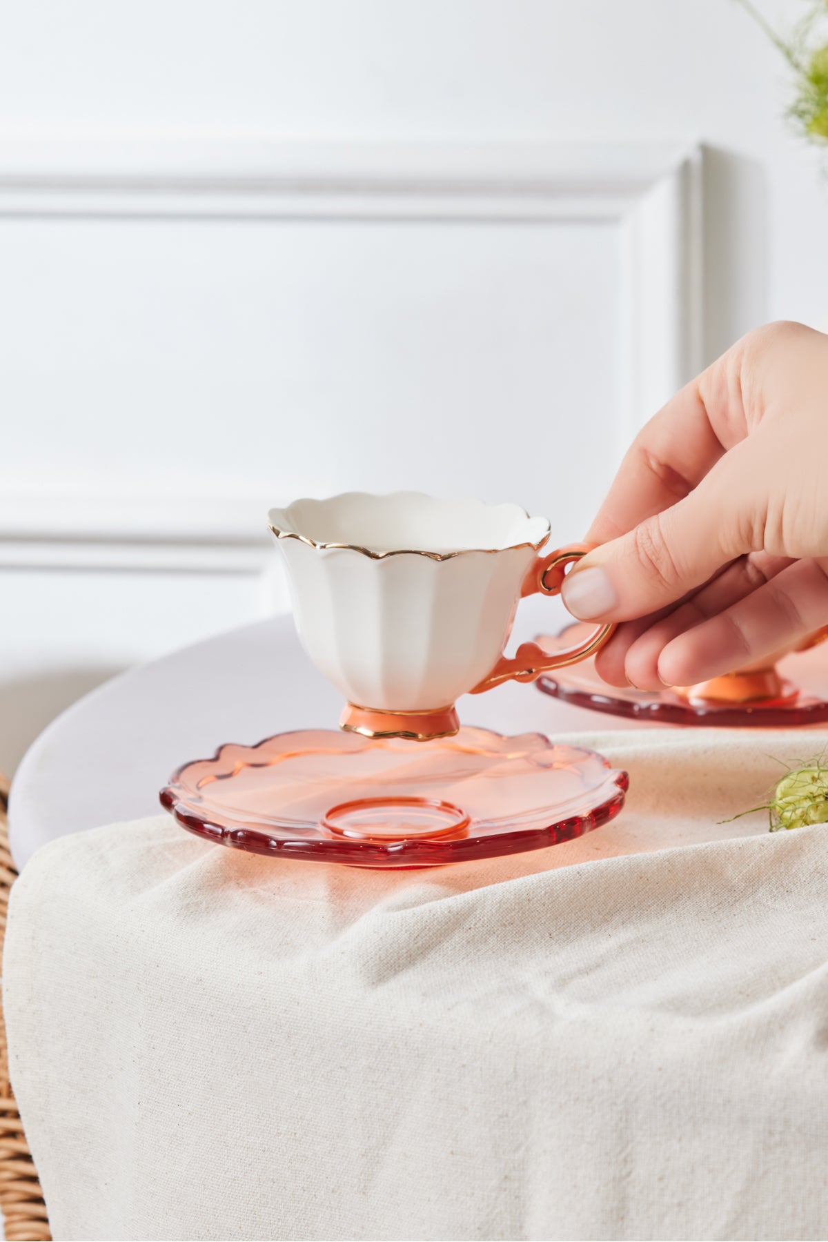 Samo Set Of 2 Orange Coffee Cups With Acrylic Saucers 90 Ml