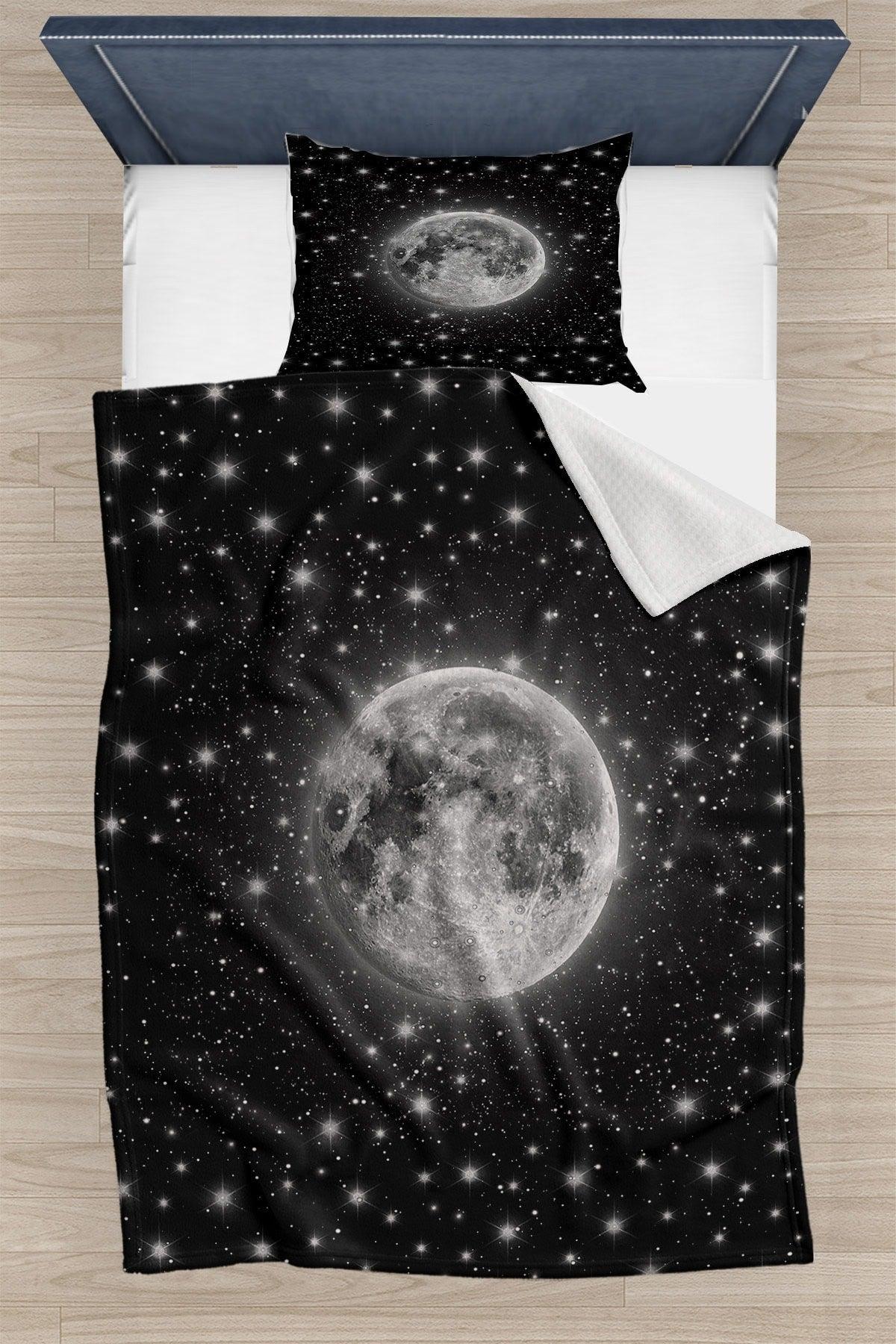 Siyah Gri Uzay Galaxy Stars Desenli Yatak Yatak Pike Seti