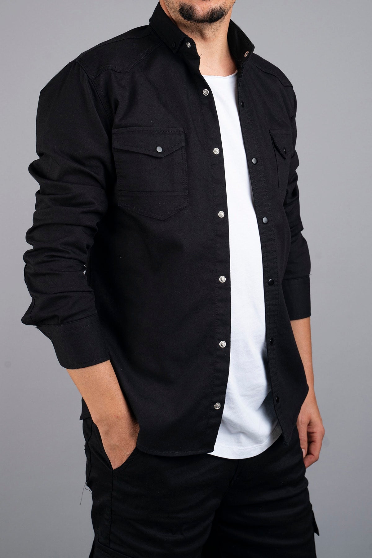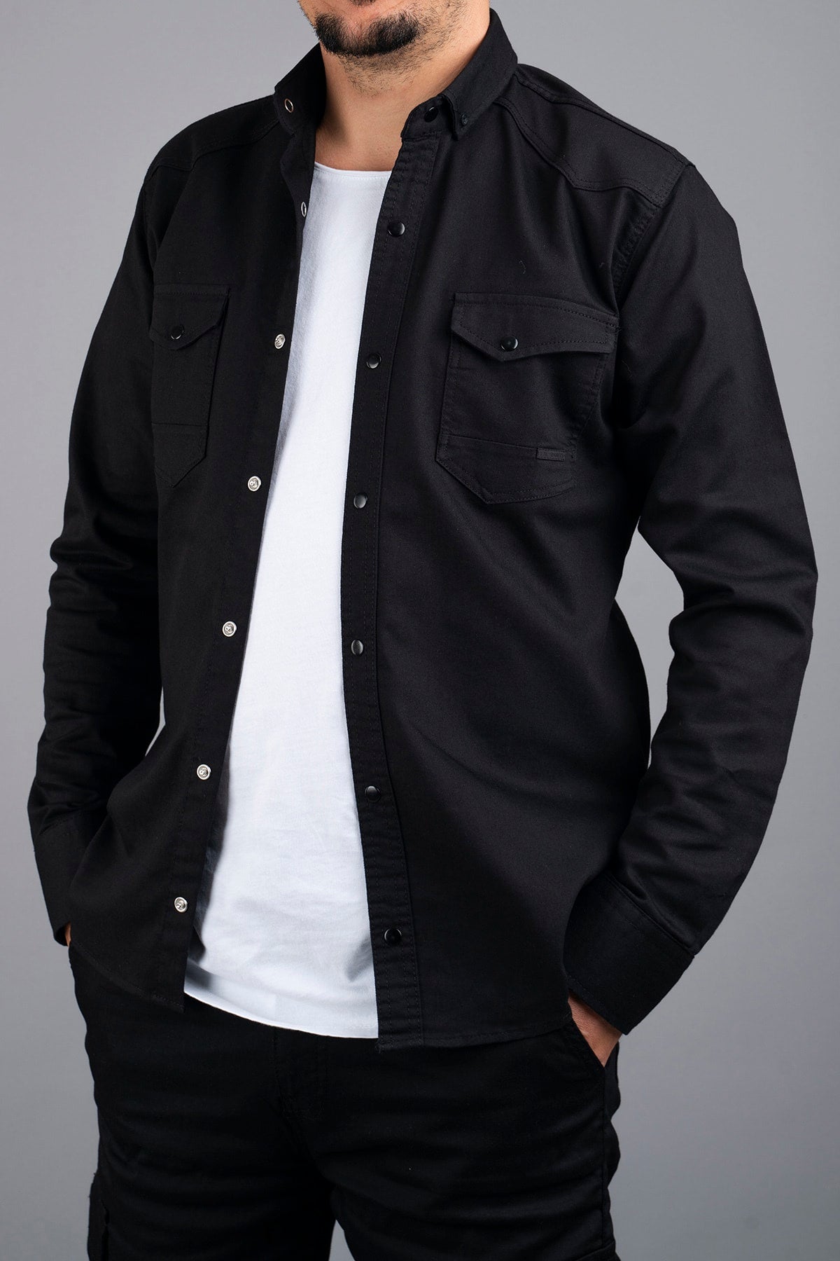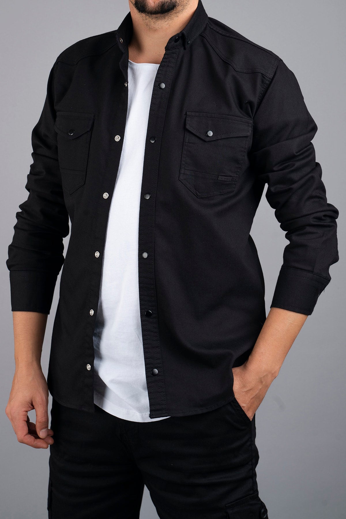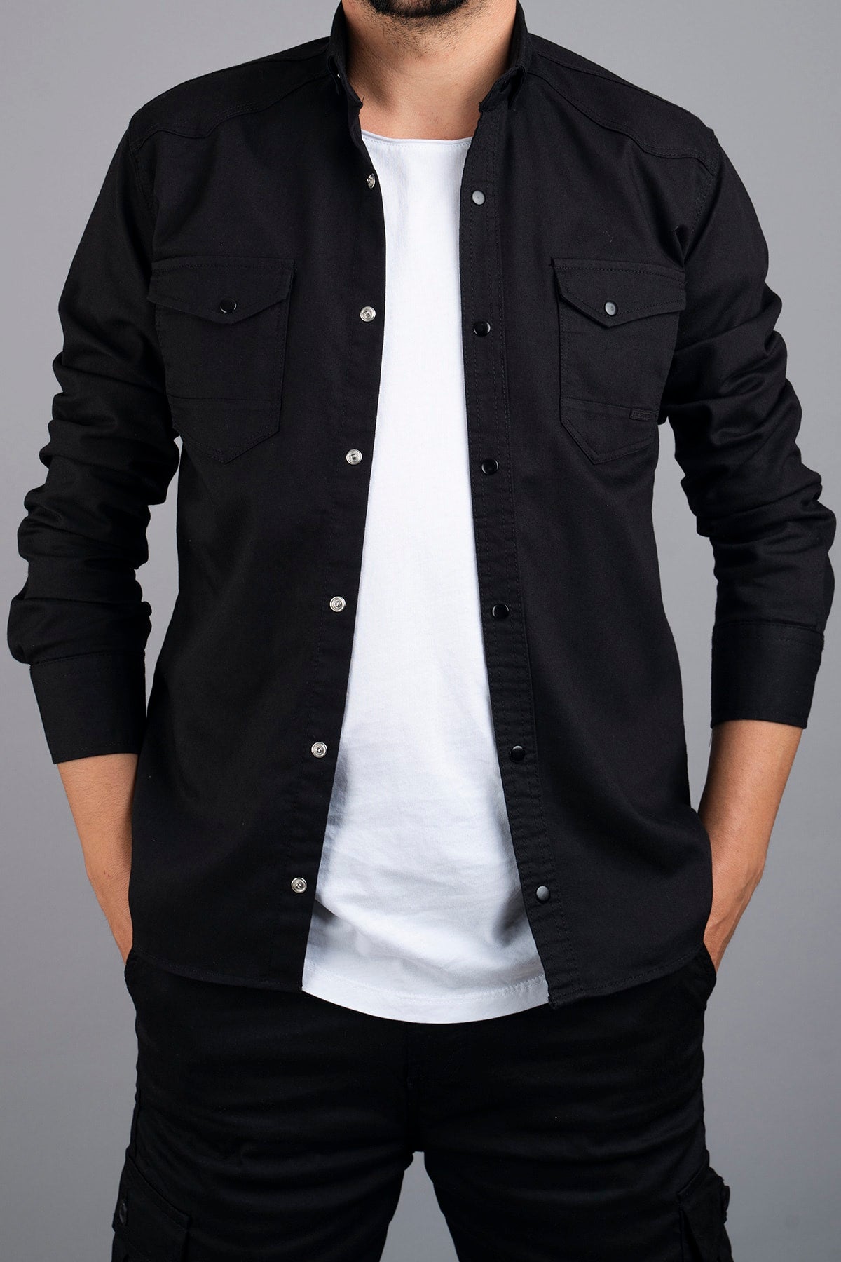 Slim Fit Men'S Denim Shirt Black