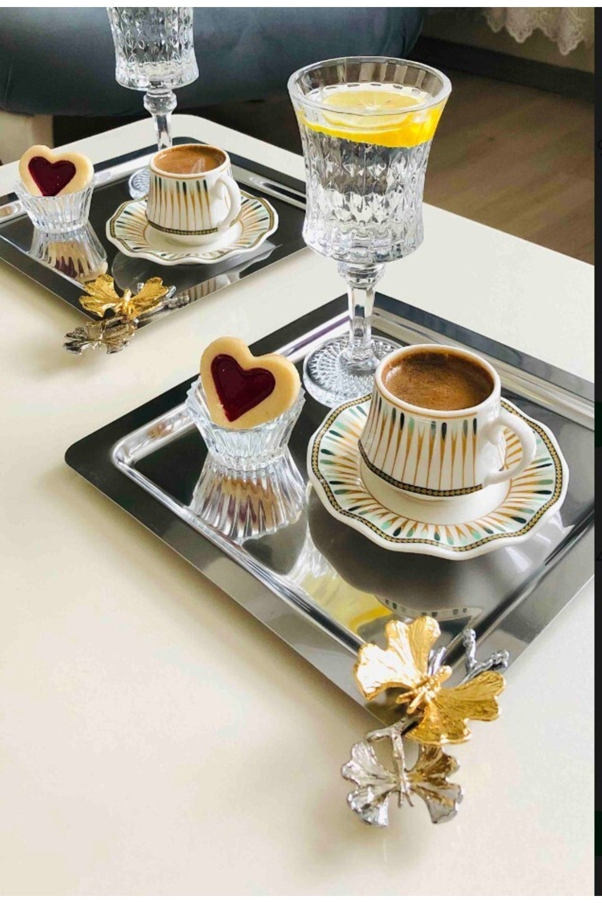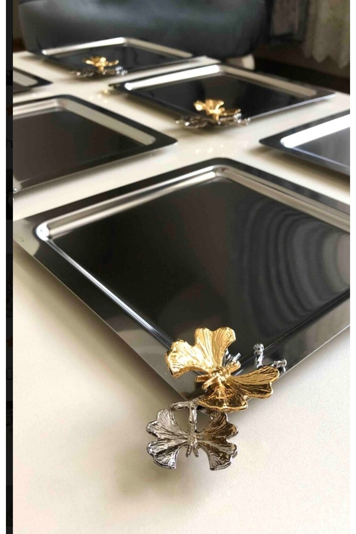 Stainless Steel Square 6 Pcs Serving And Serving Tray With Butterfly Accessories