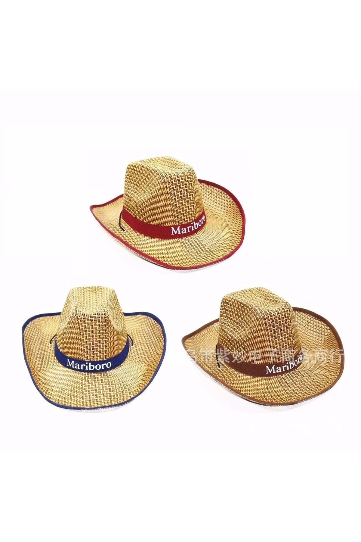 Straw Look Lace-Up Mariboro Cowboy Hat Summer Fedora Hat