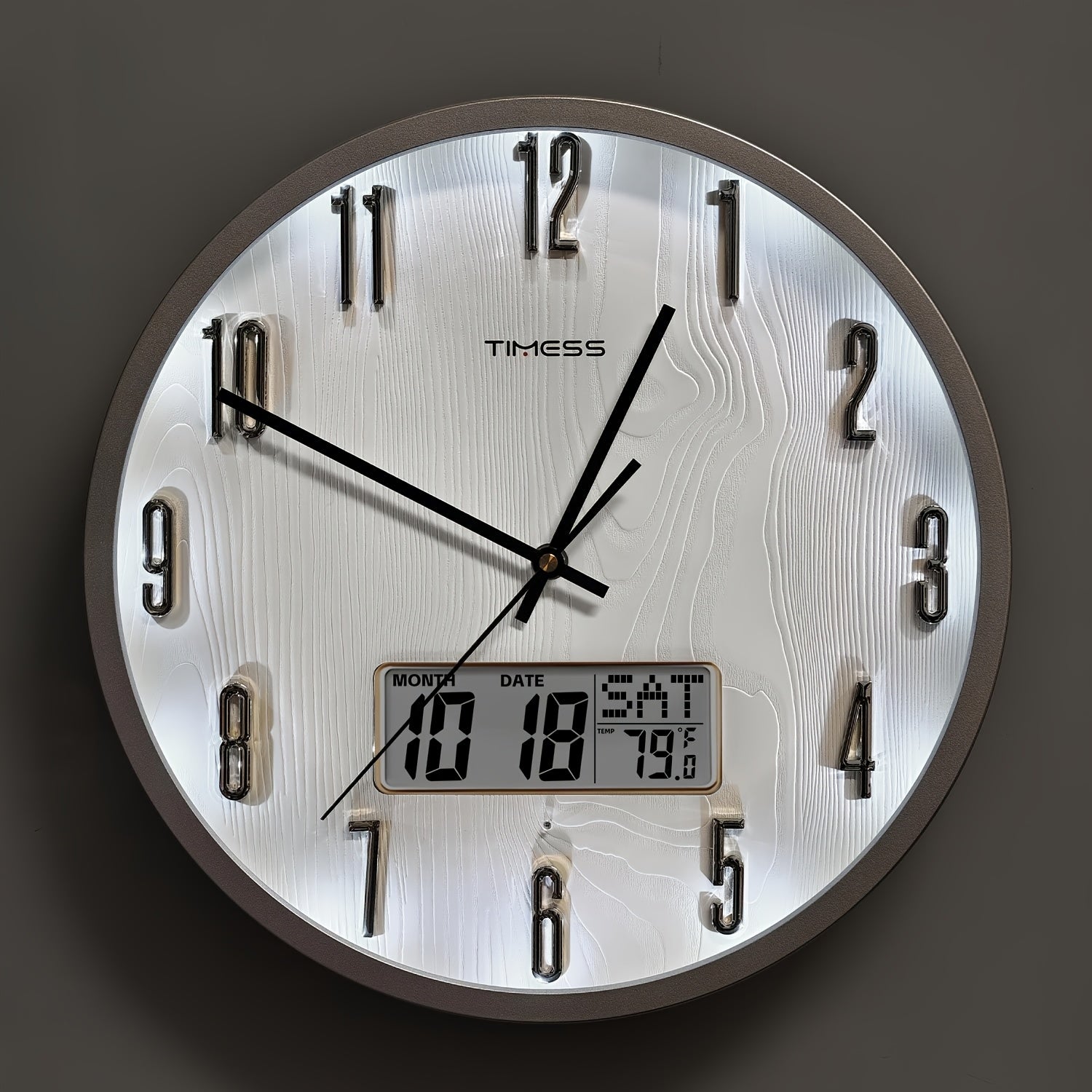 TIMESS Intelligent Night Light Wall Clock, 14 Inches, Precise And Silent Departure Time, With Night Light Voice Control Function And Calendar Week Display, Suitable For Living Rooms And Offices