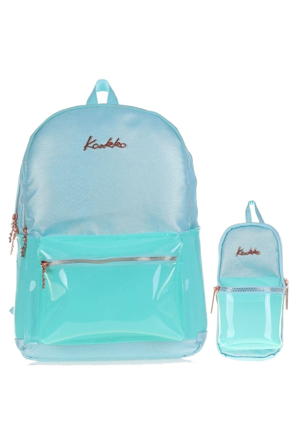 Transparent Turquoise School Backpack And Pencil Holder Set - Middle School-High School