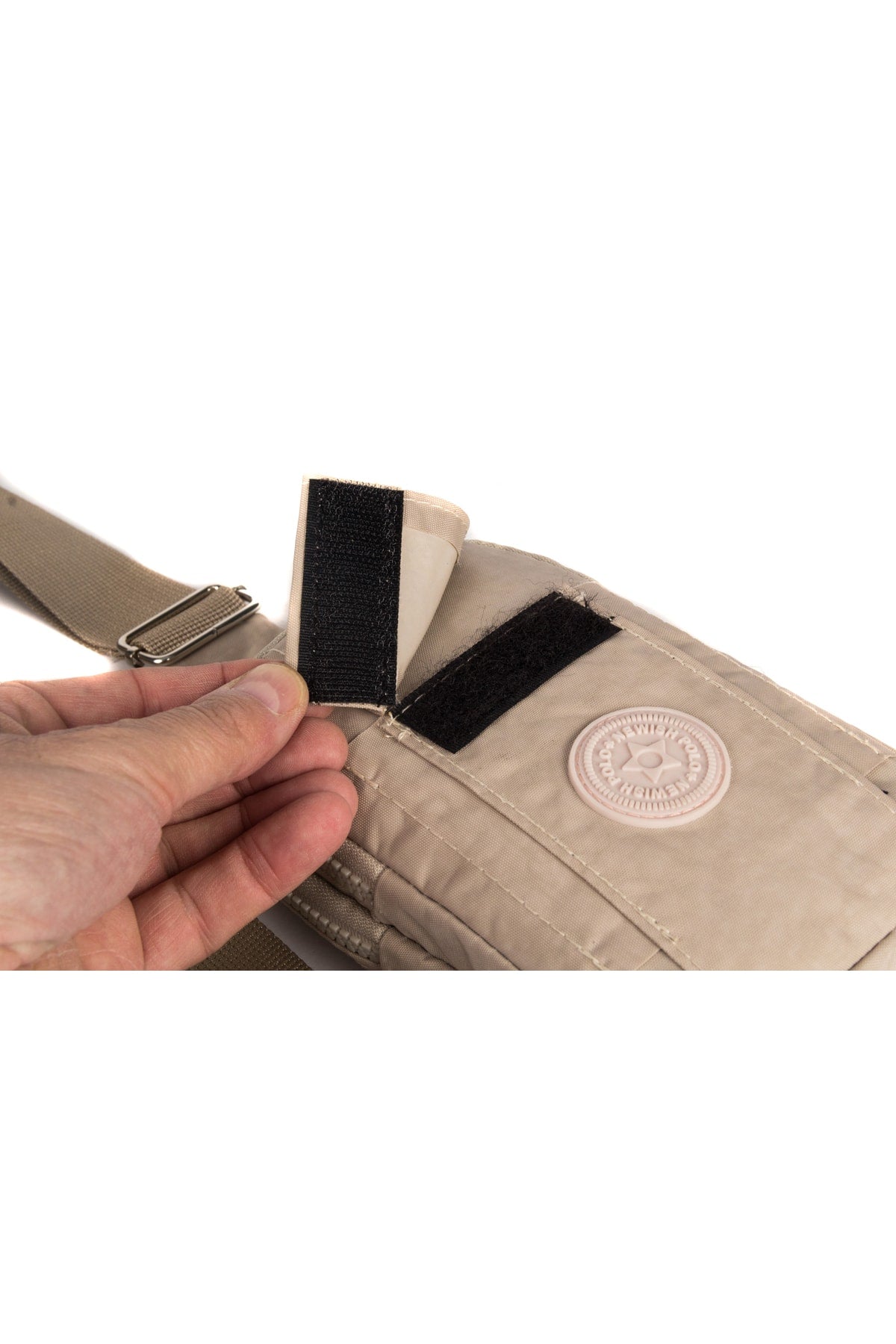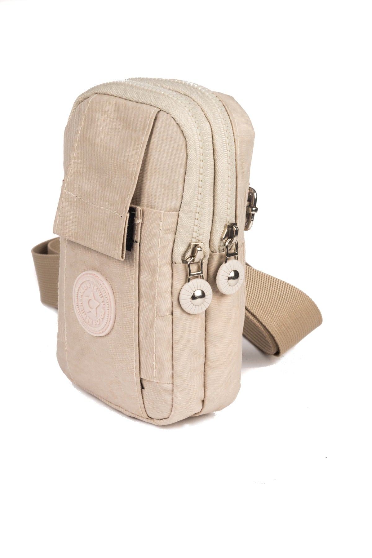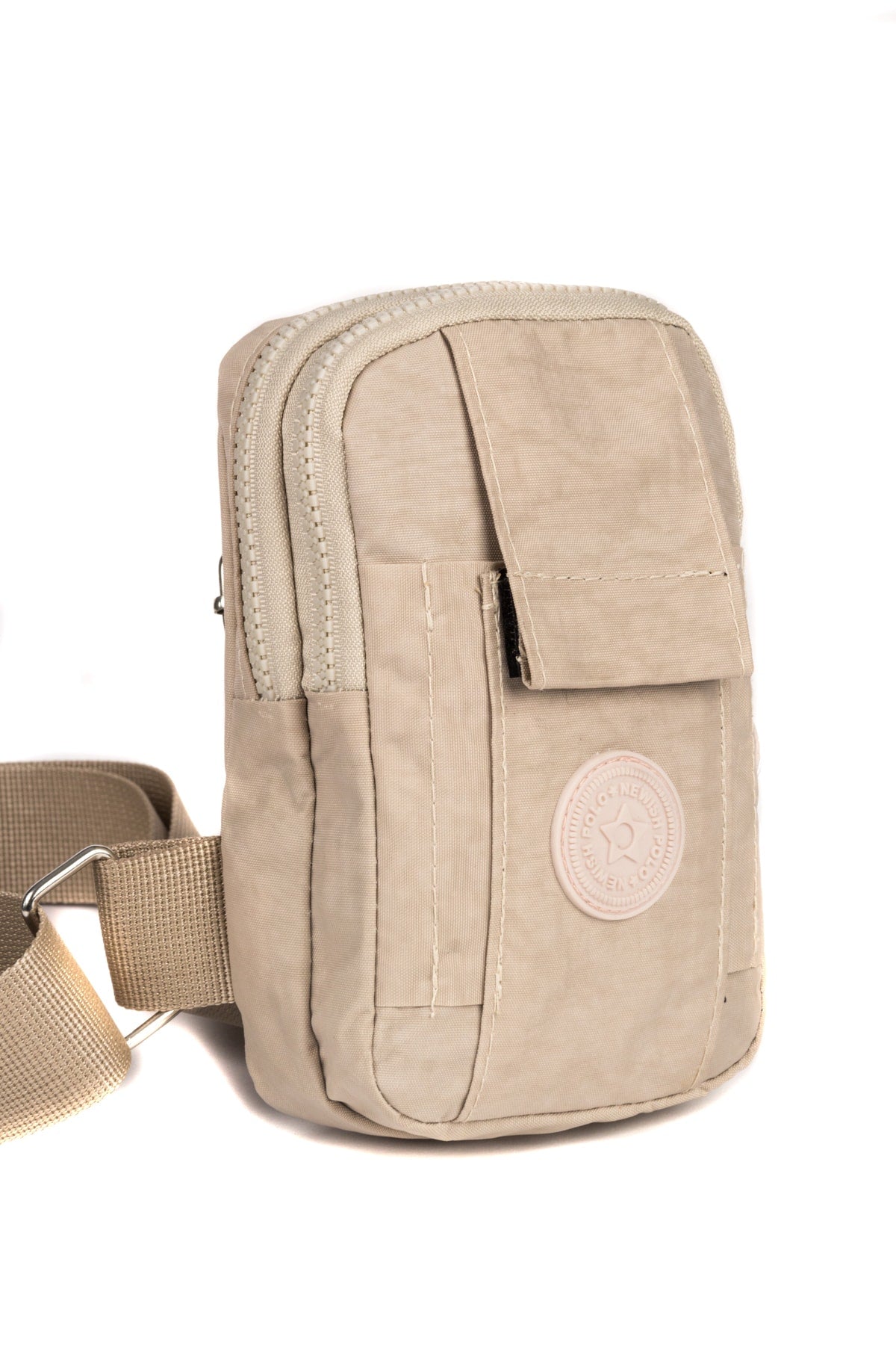 Unisex Crinkled Fabric Mini Shoulder Bag With Phone Compartment Sport And Daily Use Beige