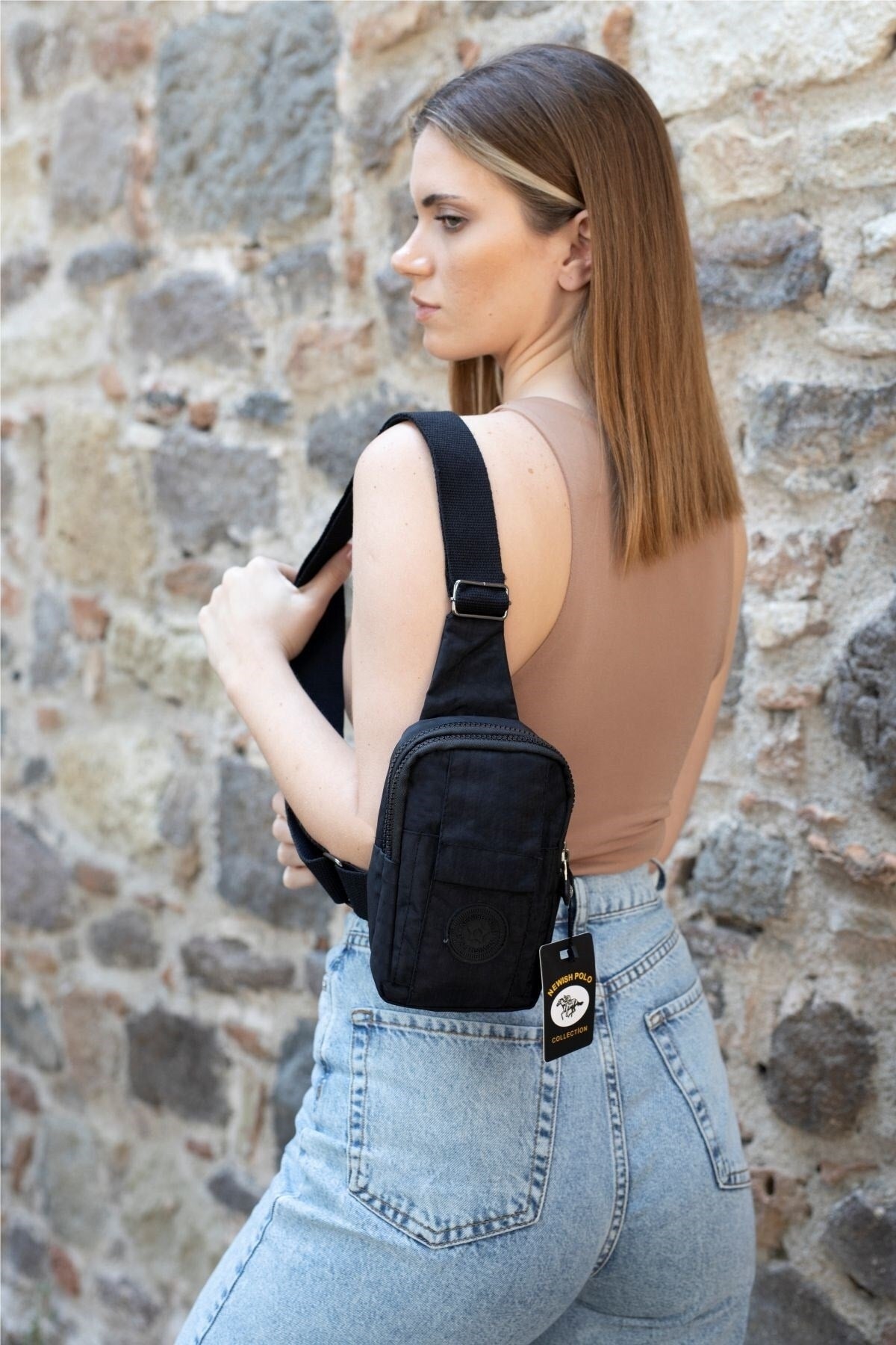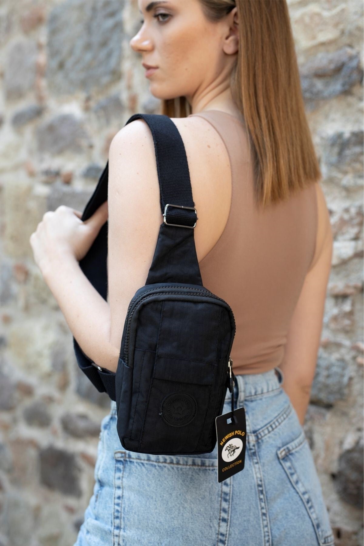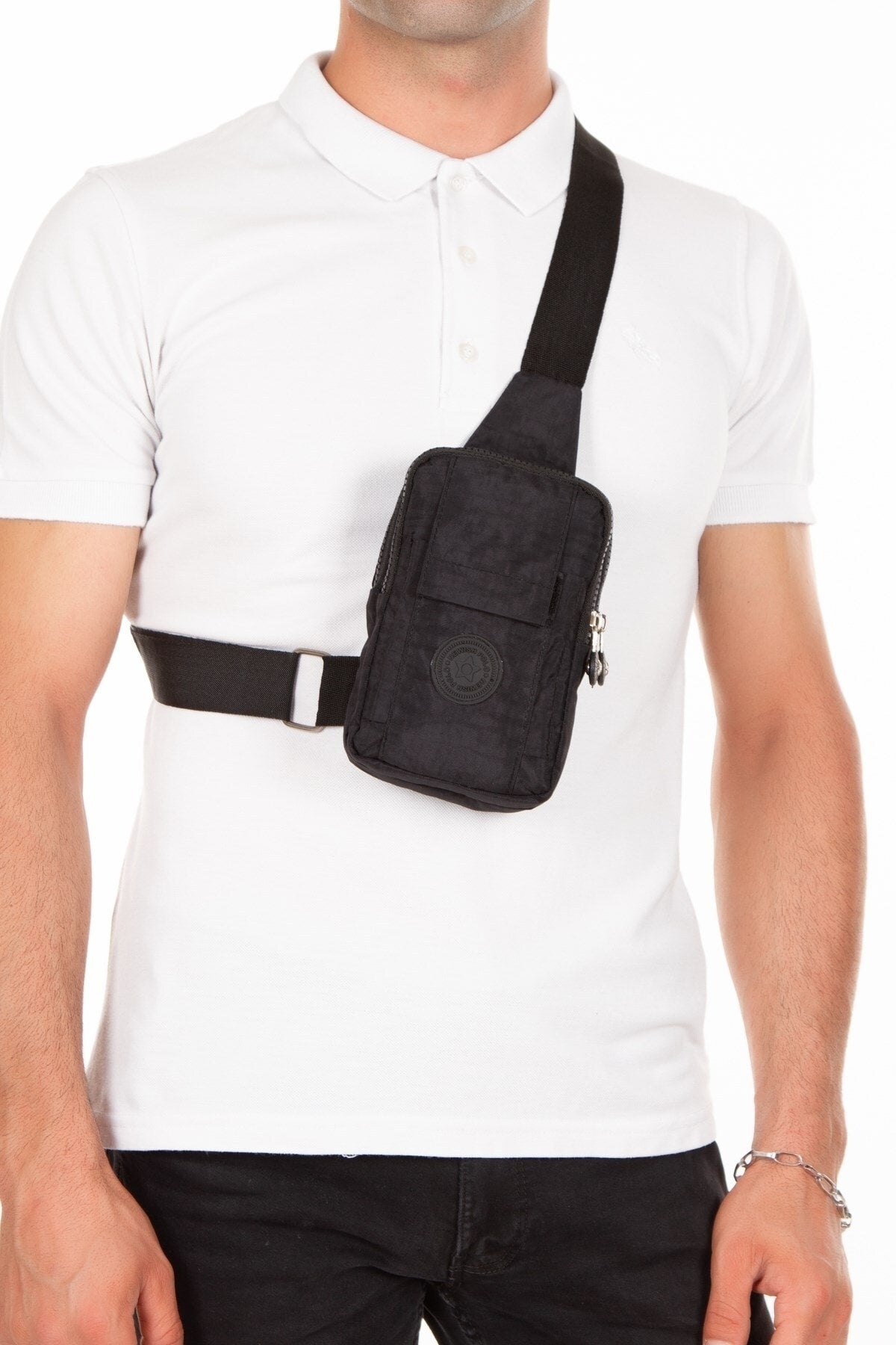 Unisex Crinkled Fabric Mini Shoulder Bag With Phone Compartment Sports And Daily Use