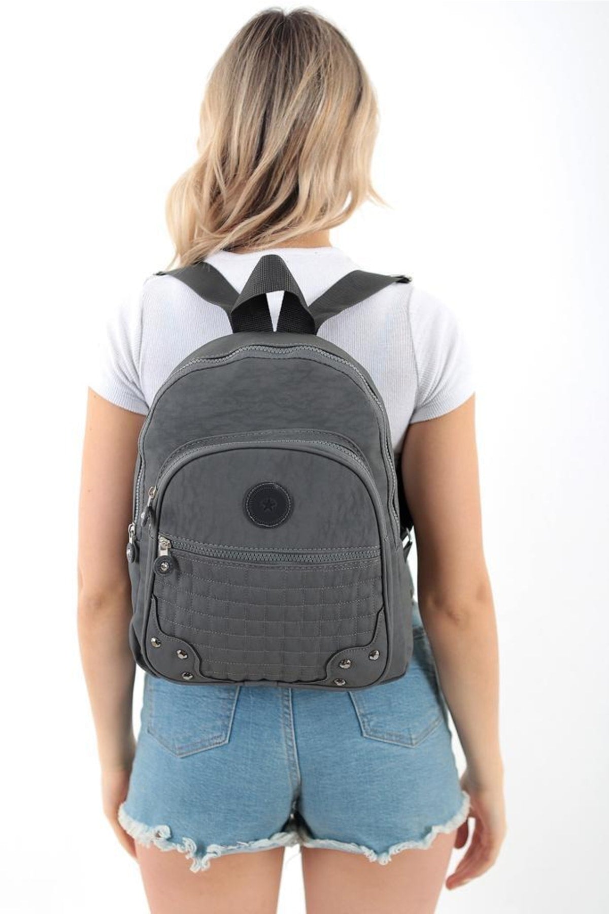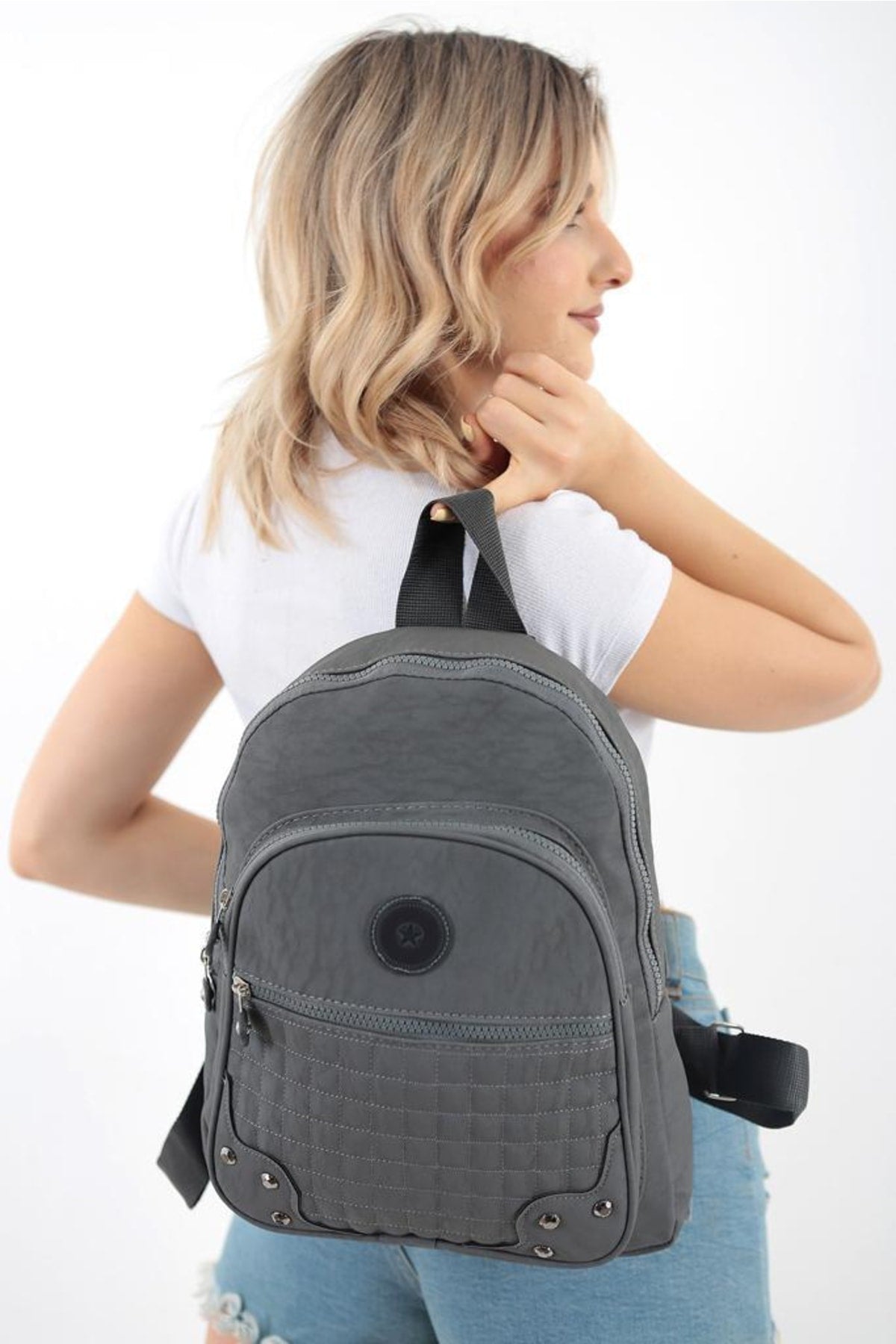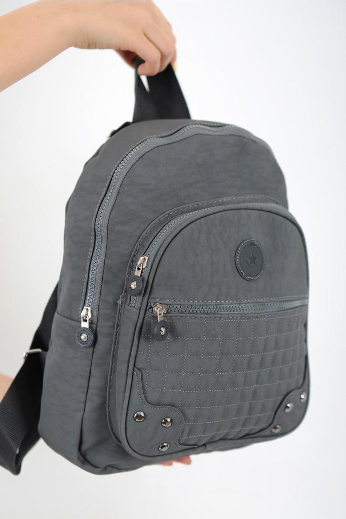 Unisex Gray Crinkle Fabric Waterproof & Dirt-Resistant Backpack And School Bag