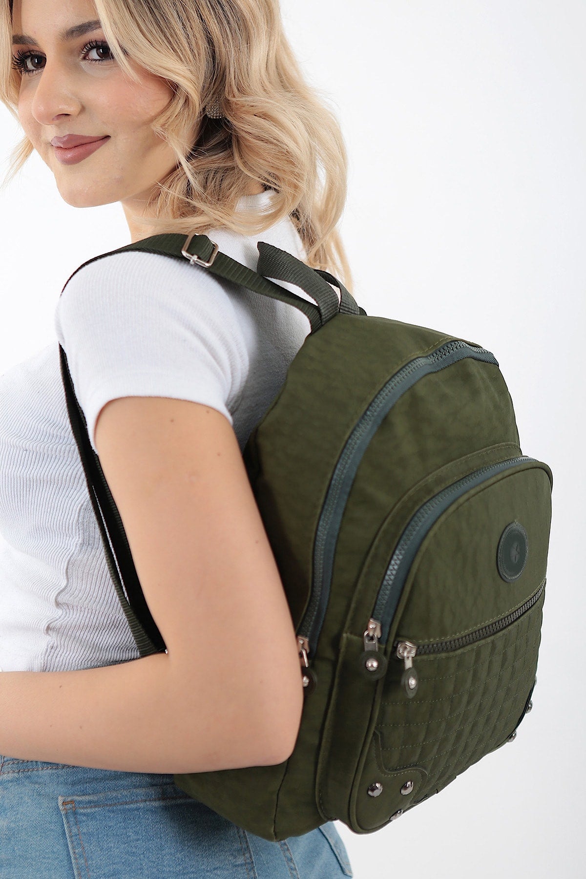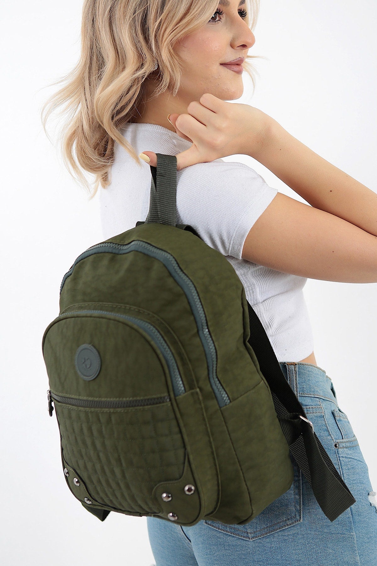 Unisex Green Crinkle Fabric Waterproof & Dirt-Resistant Backpack And School Bag
