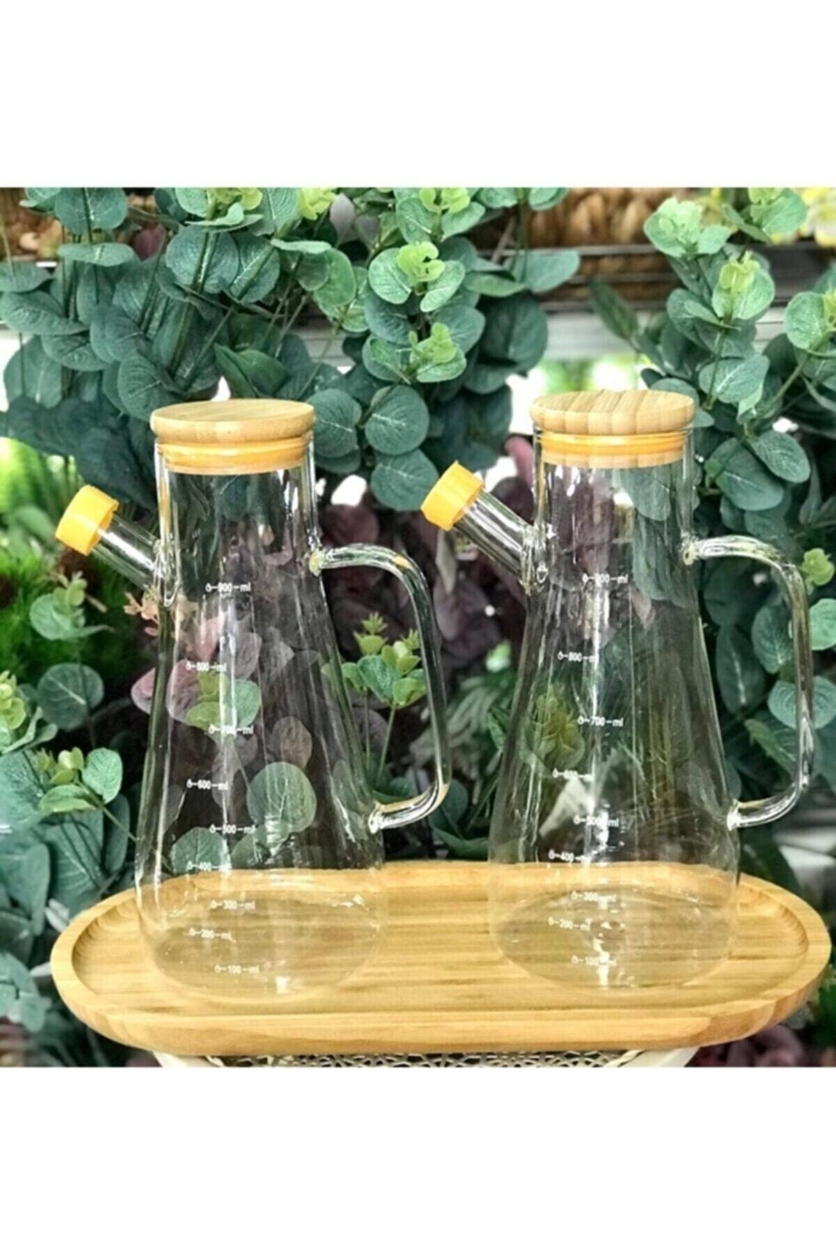 Vacuum Borosilicate Set Of 3 With Bamboo Lid Glass Oil Vinegar Bamboo Base