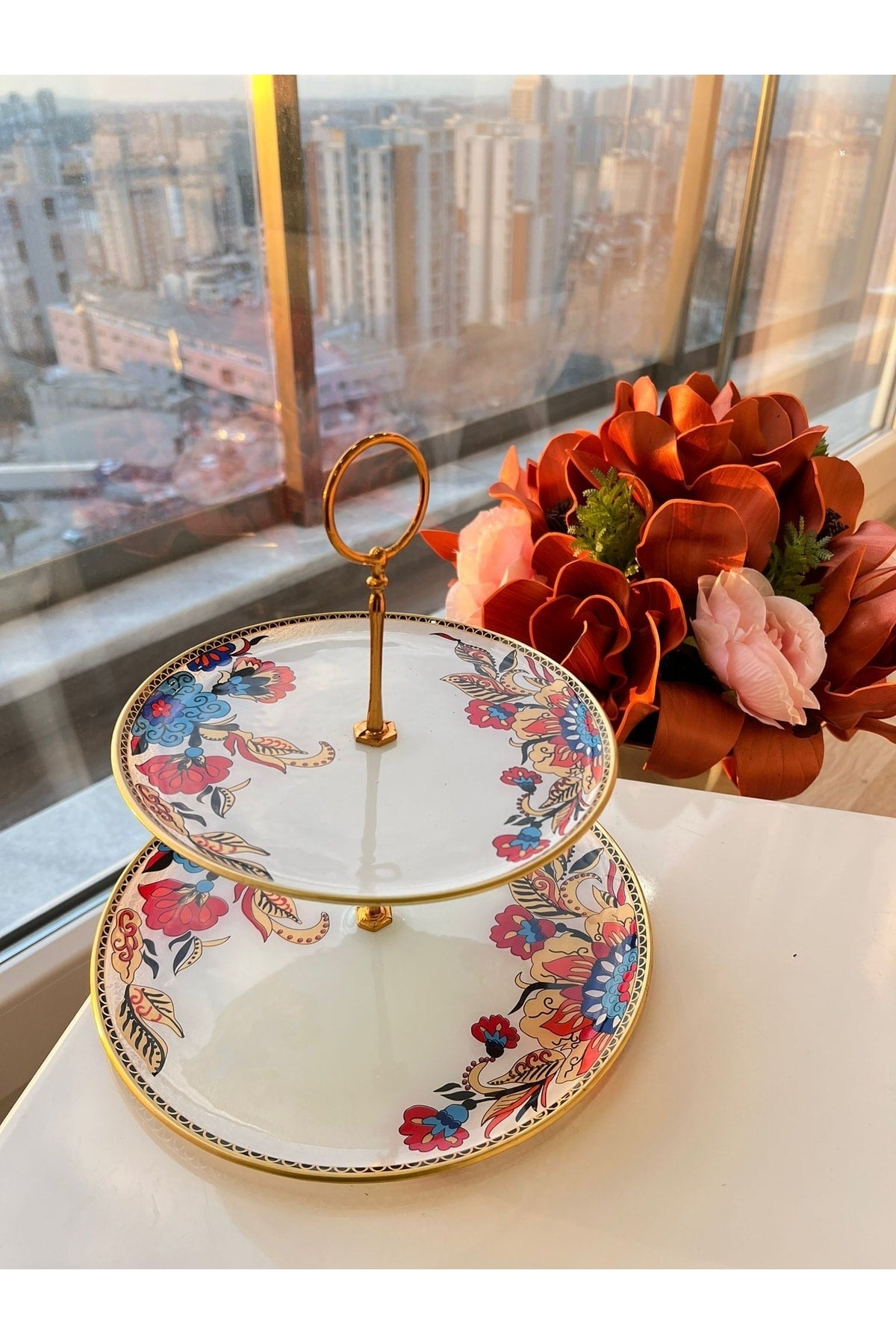 White Flower Patterned 2 Layer Cake Cookie Holder
