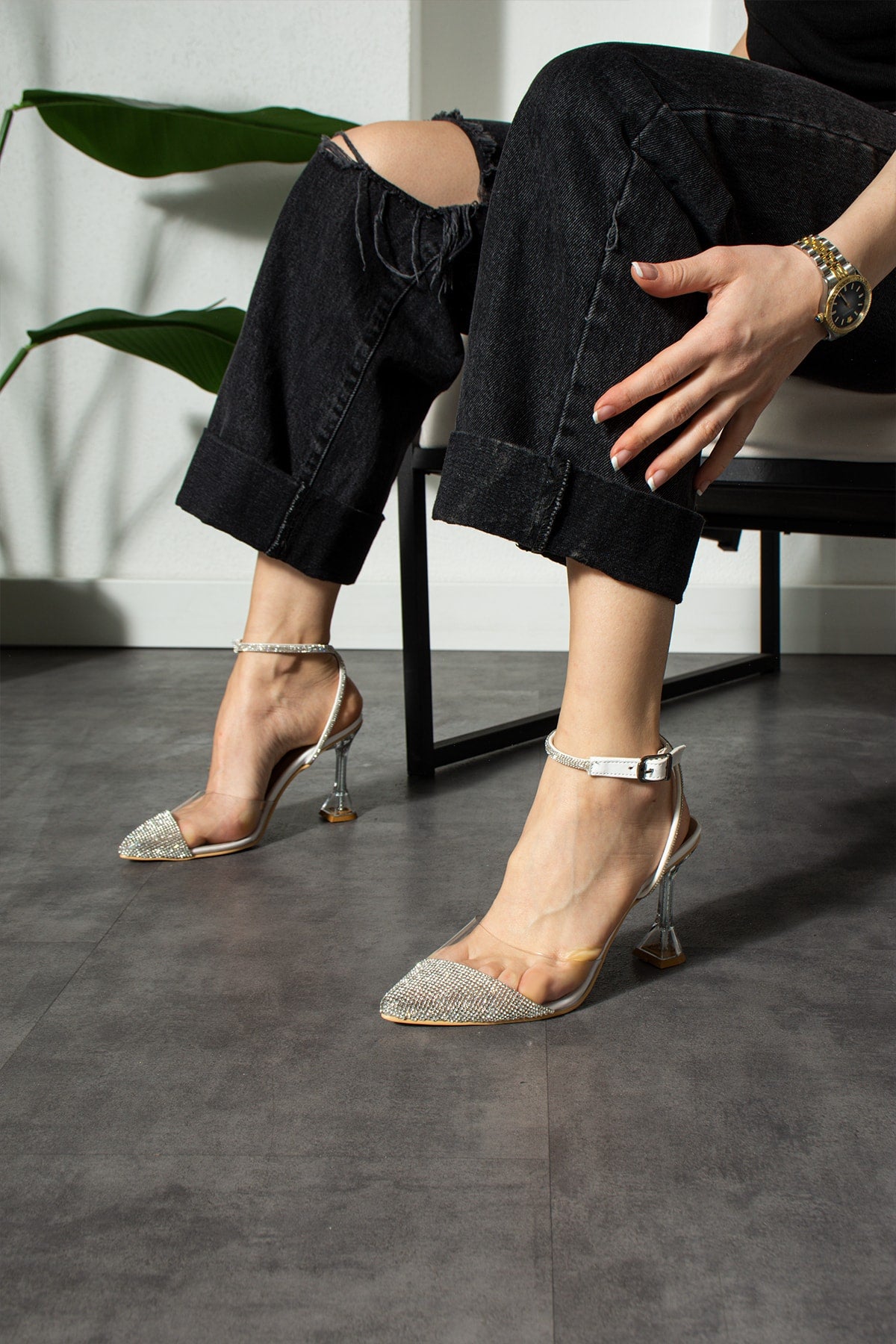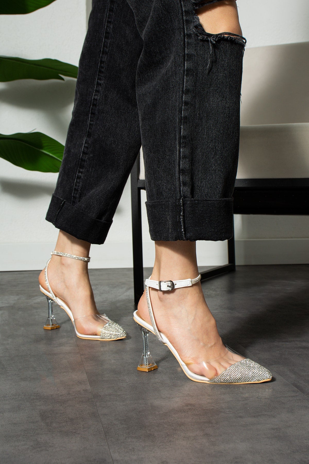 White Transparent Stone Women'S Evening Dress Heeled Shoes